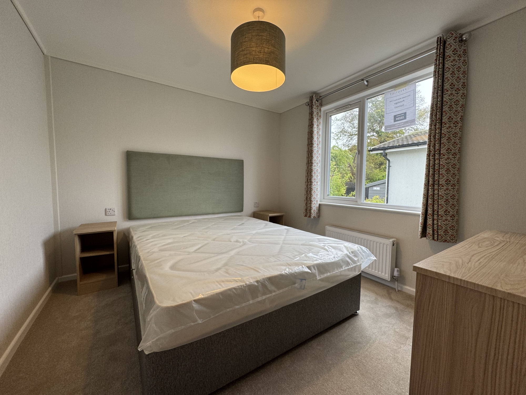 This brand new, modern-furnished Prestige Sonnet (40'x20') park home is perfect for those looking for a detached, easy to maintain, bungalow-style property. The home features a spacious kitchen and dining area, living space, and two bedrooms. The exterior features a garden area and a driveway.
