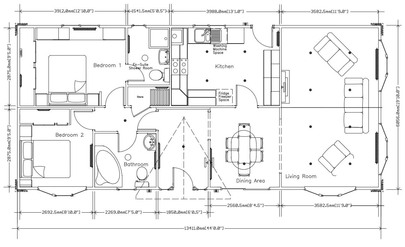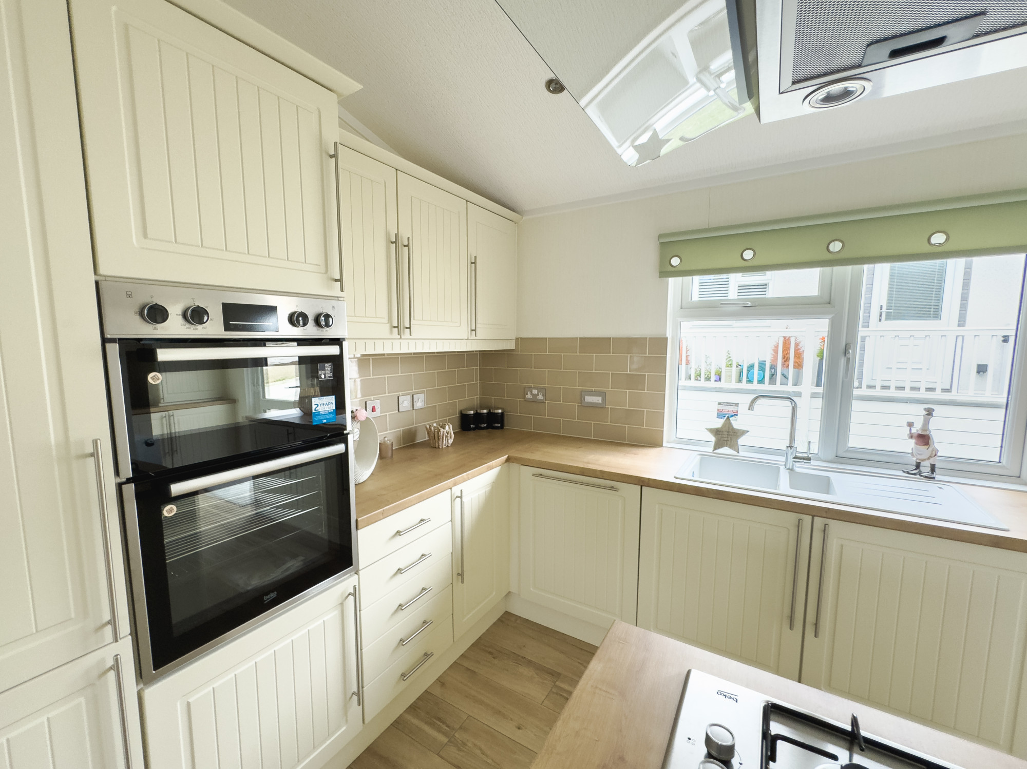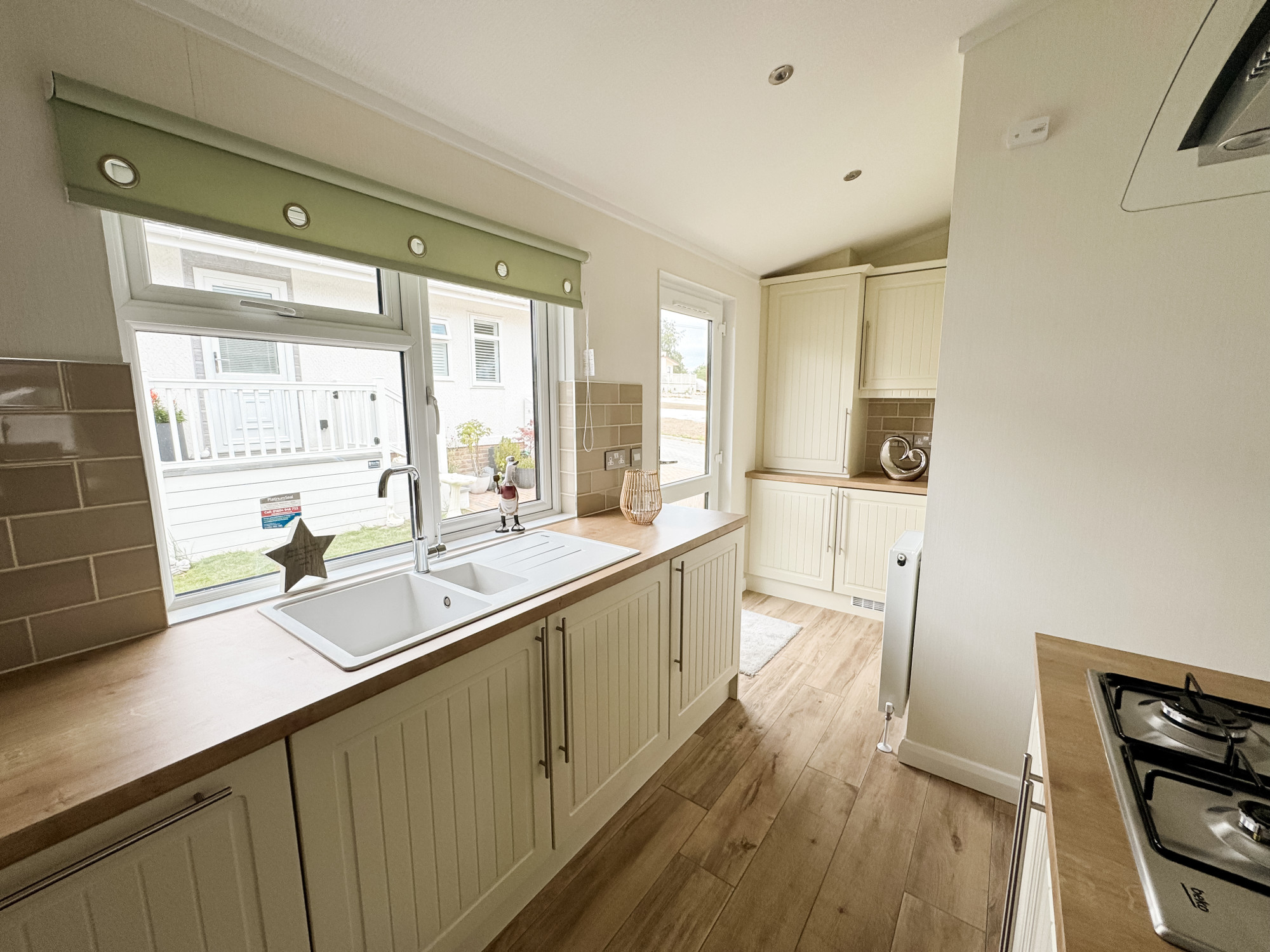 This brand new, modern-furnished Statley Albion Chatsworth Gold (40'x20') luxury lodge is perfect for those looking for a detached, easy to maintain, bungalow-style leisure property. The landscaped exterior boasts a large decking and parking. The lodge features a modern kitchen and living spaces. The kitchen has plenty of worktop space and integrated appliances.