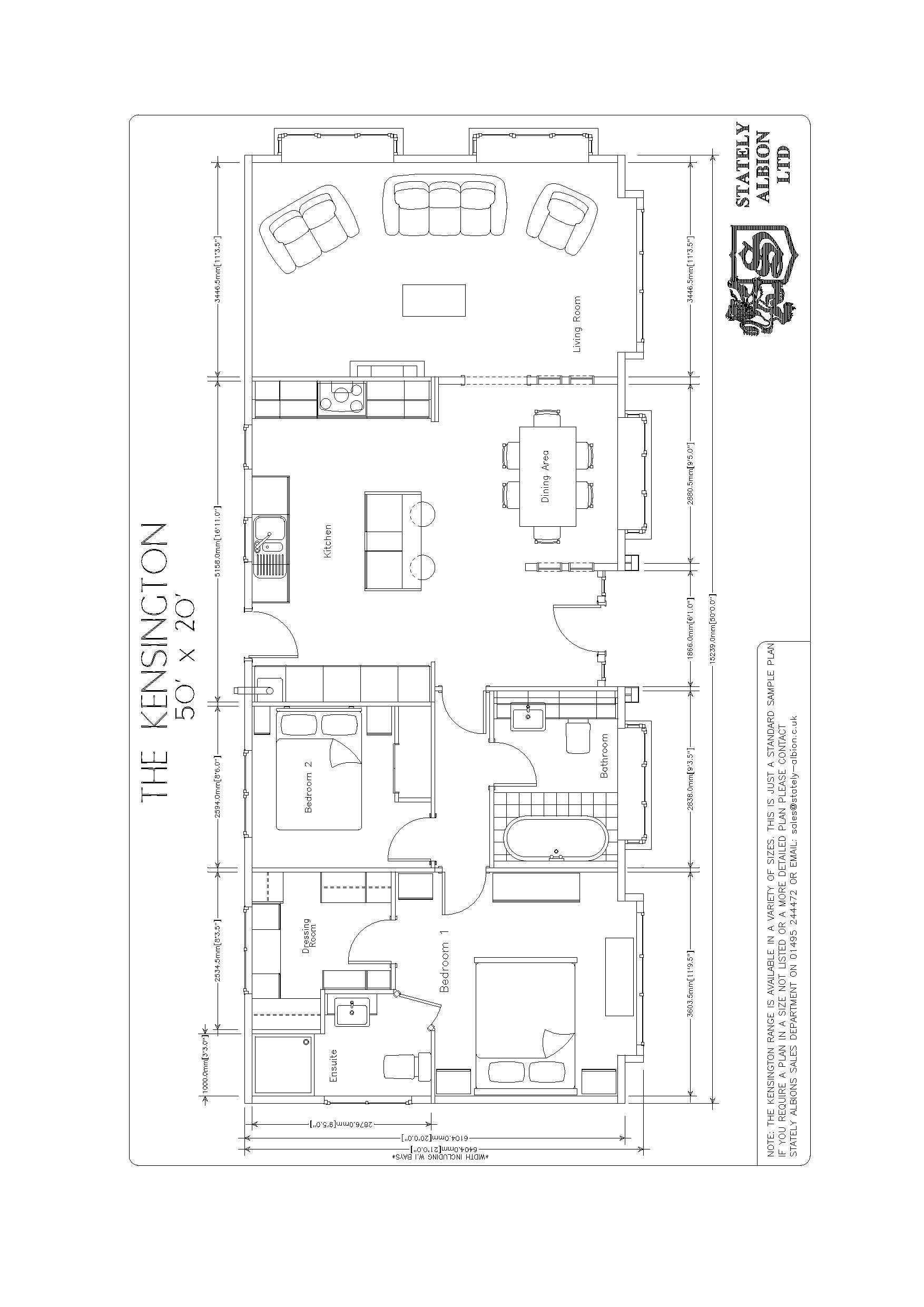 This brand new, modern-furnished Stately Kensington (50'x20') luxury lodge is perfect for those looking for a detached, easy to maintain, bungalow-style leisure lodge. The lodge has a spacious and modern kitchen with integrated appliances, dining area and living room with an electric fireplace. The home has two double bedrooms, an en suite and a bathroom.