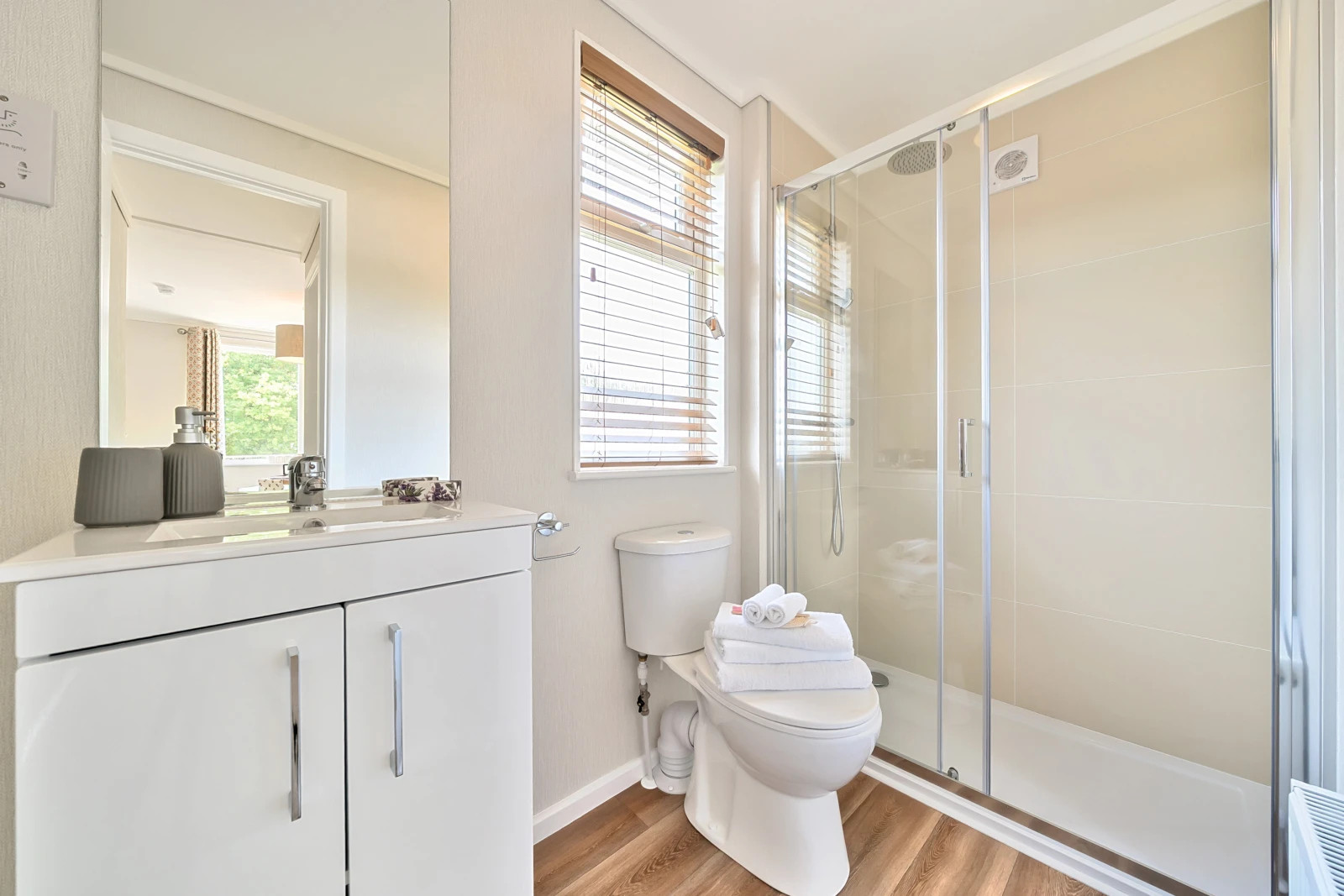 This brand-new, modern-furnished Sonnet (45'x20') luxury park home is perfect for those looking for a detached, easy-to-maintain, bungalow-style property. The home has a spacious kitchen, dining area, comfortable living room, and a study. The master bedroom has an en suite and walk in wardrobe, there is a second double bedroom and a bathroom.