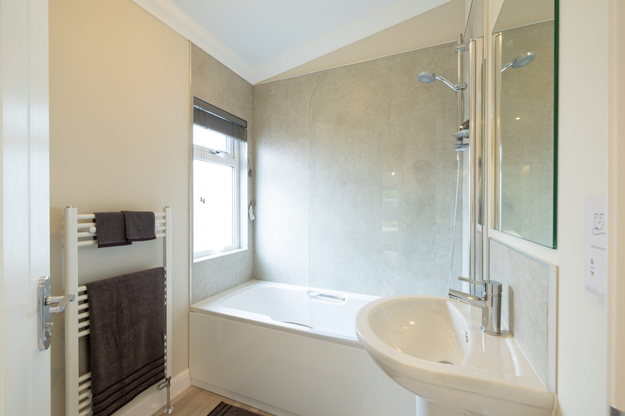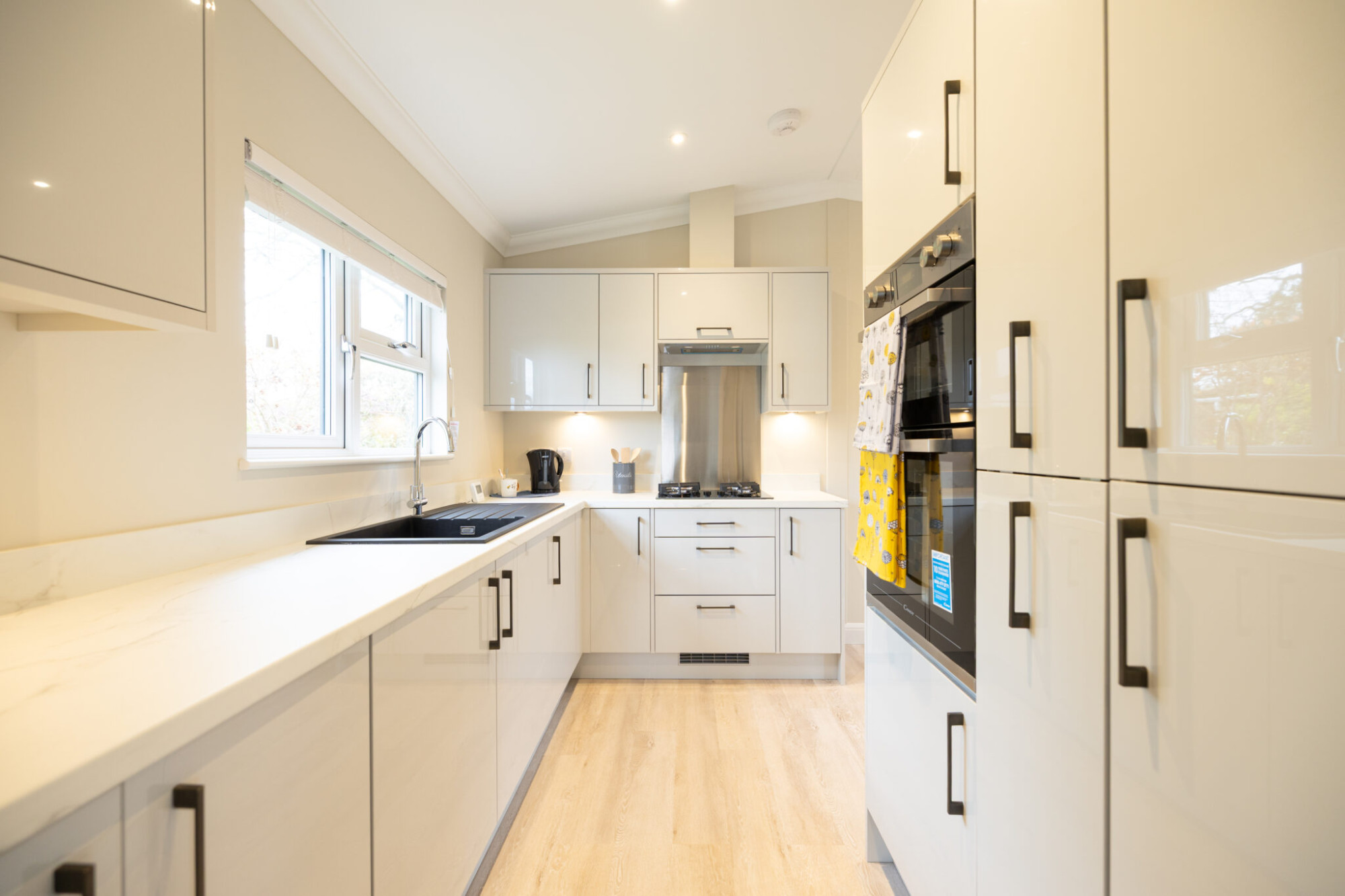 This brand new, fully furnished modern Manor Berkeley Plus (45'x14') park home is perfect for those looking for a detached, easy to maintain, bungalow-style property. The home boasts the latest construction techniques, design, and guarantees and enjoys modern full furnishings and integrated appliances. The home has a spacious kitchen, living and dining area, two bedrooms and two bathrooms.