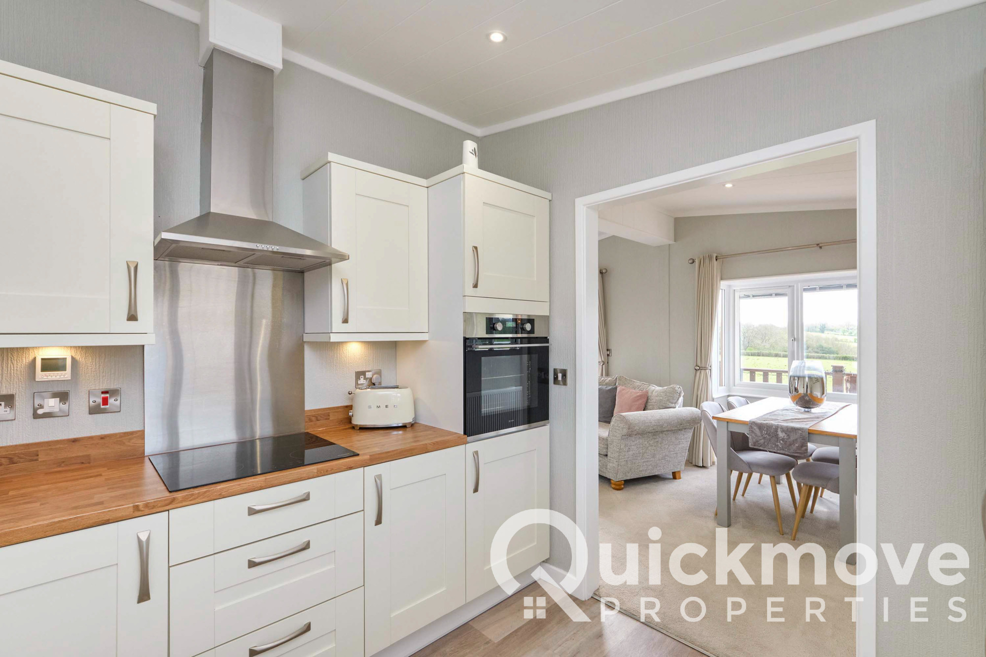 This pre-owned Tingdene Lamport (40'x20') park home is perfect for those looking for a detached, easy-to-maintain, bungalow-style property. The home has a modern kitchen and utility room with integrated appliances, comfortable living and dining area with doors leading out the the decking. The master bedroom has an en suite and walk in wardrobe, there is a second double bedroom and a bathroom. The home has a garden space with decking with stunning views of the Severn Valley Country Park directly in front.