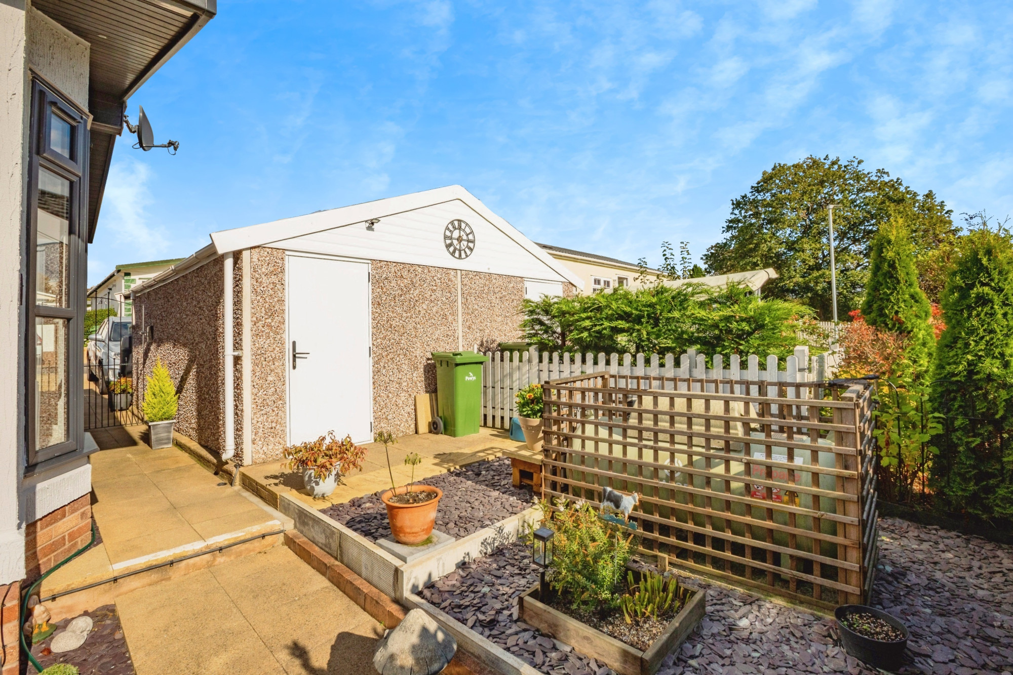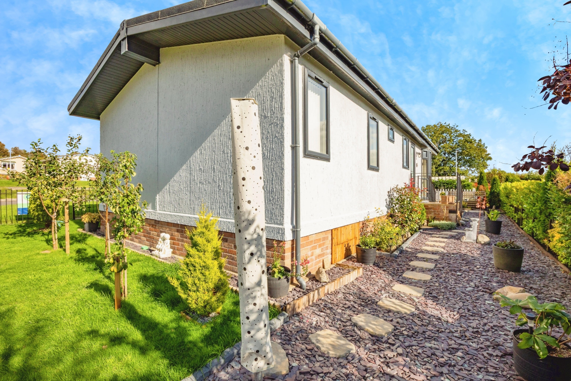 This pre-owned, Pathfinder Ferndale (40'x20') park home is perfect for those looking for a detached, easy-to-maintain, bungalow-style property. The home has a modern, spacious kitchen, a comfortable living room and dining area. There are two double bedrooms, an en suite and a bathroom. The home has a well maintained garden space with a garage and driveway.