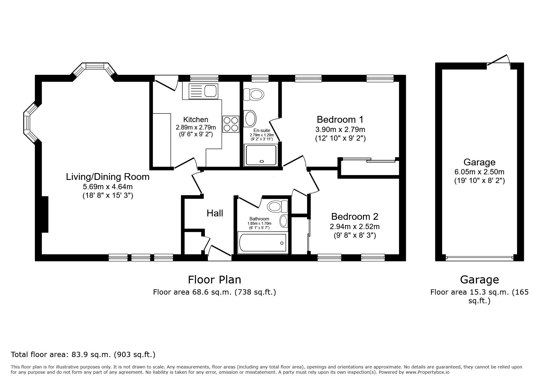 - Two bedrooms