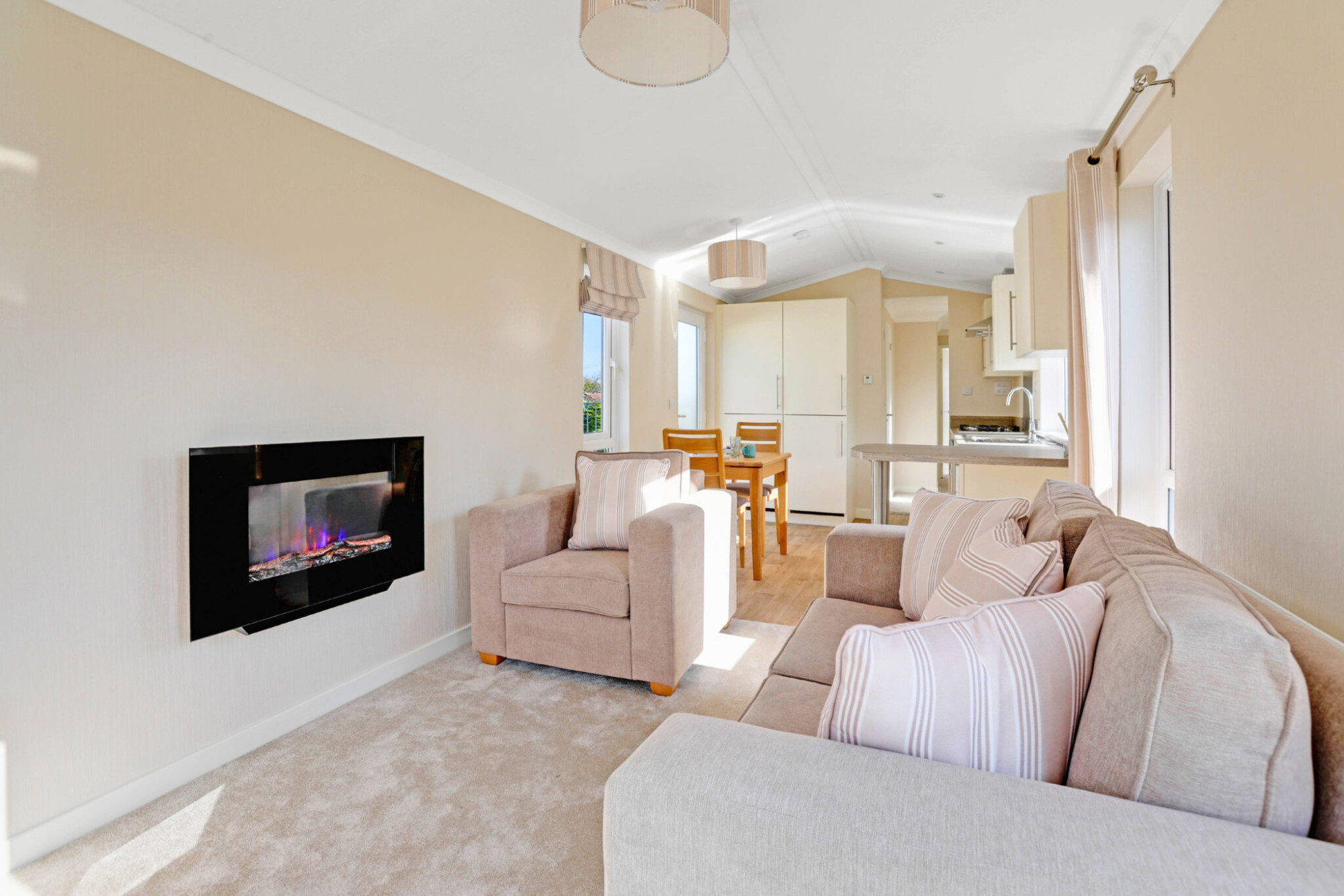 This brand new, modern-furnished Omar Newmarket (45'x10') luxury park home is perfect for those looking for a detached, easy to maintain, bungalow-style property. The home has an open plan kitchen/dining/living area, two bedrooms and one bathroom.
