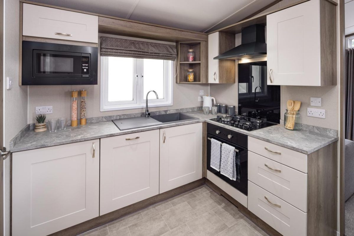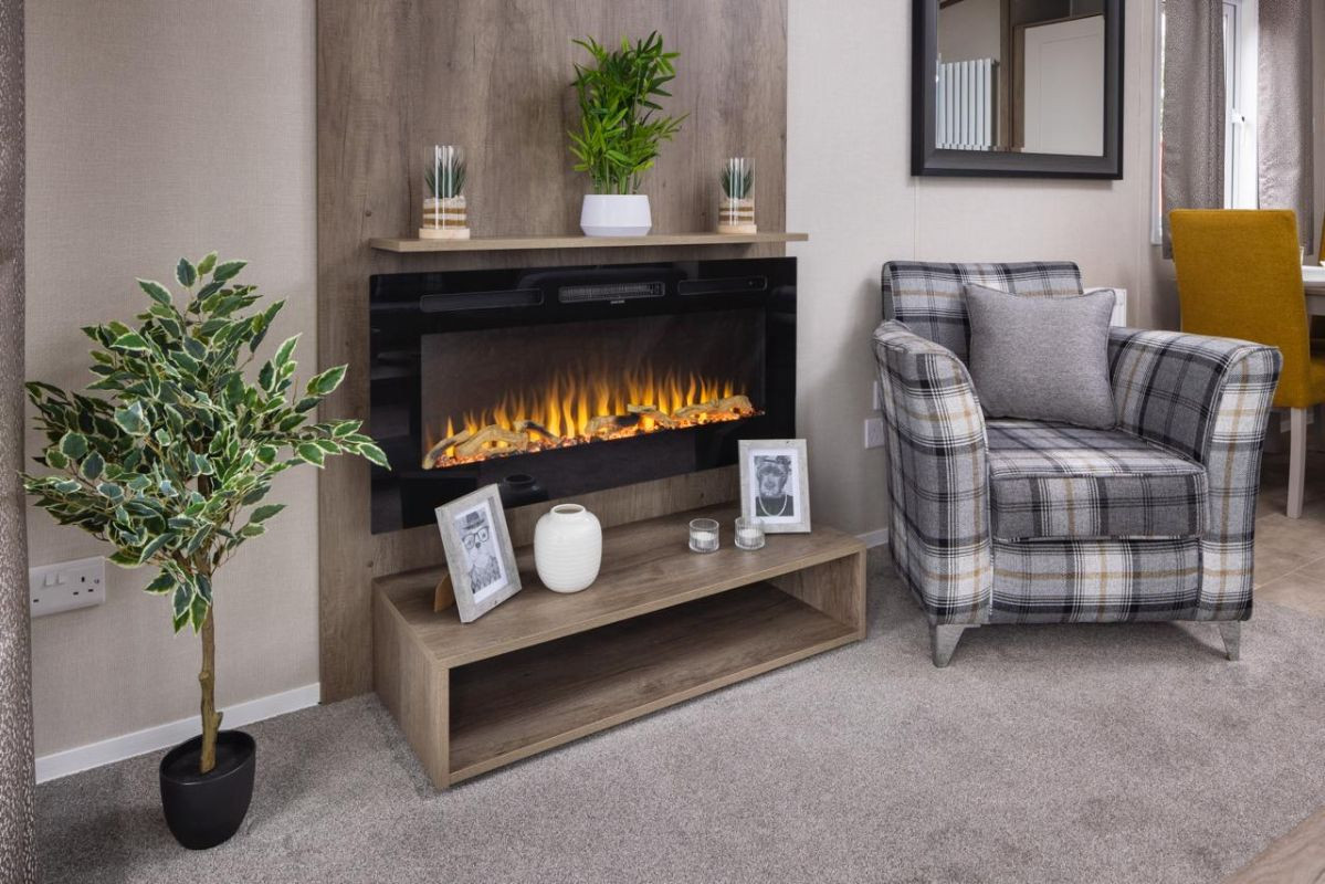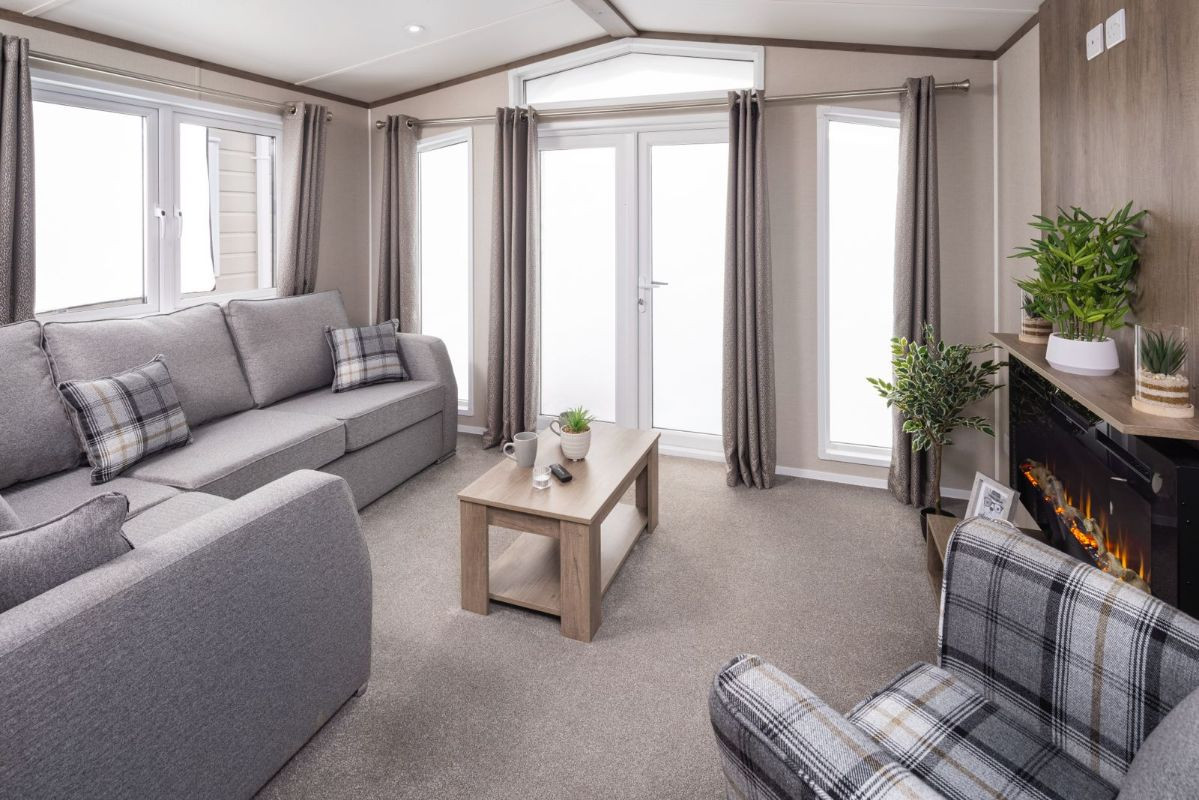 This brand new, modern-furnished luxury Amberwood (420'x13') lodge is perfect if you are looking for a detached, easy to maintain, bungalow-style leisure property. This home has an open plan layout, with a modern kitchen with integrated appliances, dining area and a comfortable lounge space with large windows and electric fireplace. There is a large master bedroom with a en suite, there is second twin bedrooms and a bathroom.