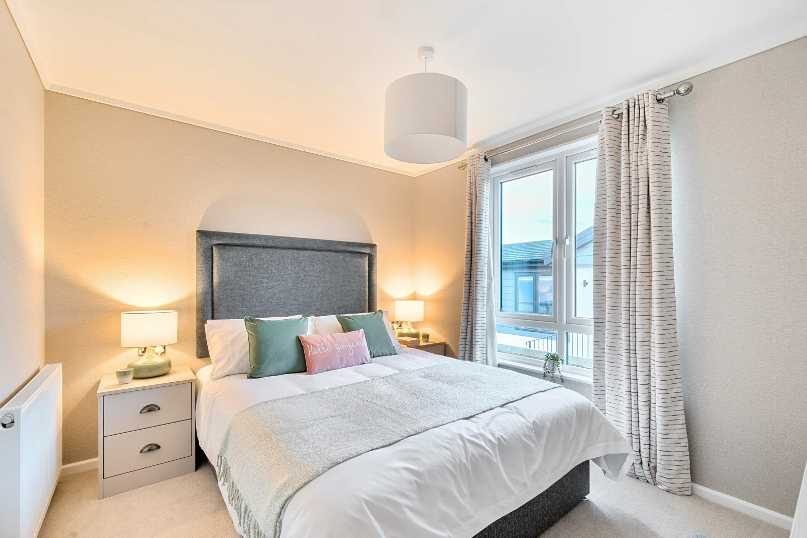 This brand new, modern-furnished Prestige Sofia (36'x20') luxury park home is perfect for those looking for a detached, easy to maintain, bungalow-style property. The home has a spacious kitchen with integrated appliances, dining area and living room with an electric fireplace. The master bedroom has a walk-in wardrobe and en suite, there is a second double bedroom and a bathroom.