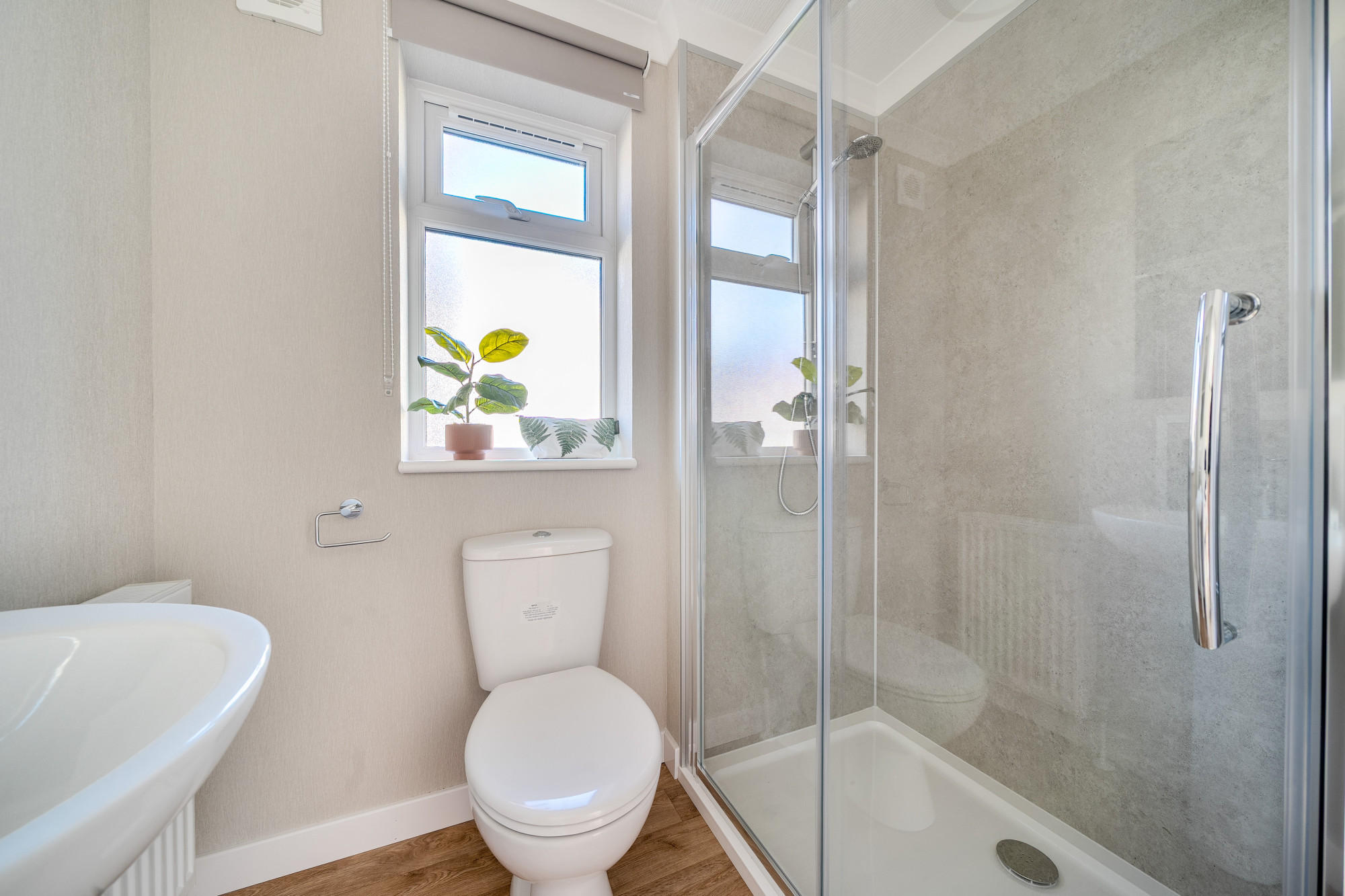 This brand new, modern-furnished Omar Westbury (33'x16') luxury park home is perfect for those looking for a detached, easy to maintain, bungalow-style property. The home has a spacious galley style kitchen with integrated appliances, dining area and living room with an electric fireplace. There are two double bedrooms and a bathroom.
