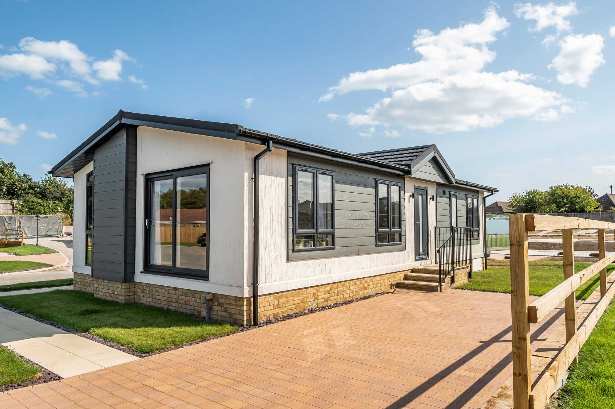 This brand-new, modern-furnished Residence (42'x22') luxury park home is perfect for those looking for a detached, easy-to-maintain, bungalow-style property. The home has a spacious kitchen with integrated appliances and an island, dining area and comfortable living area with electric fireplace. There are two double bedrooms with fitted wardrobes, an en suite and a bathroom.