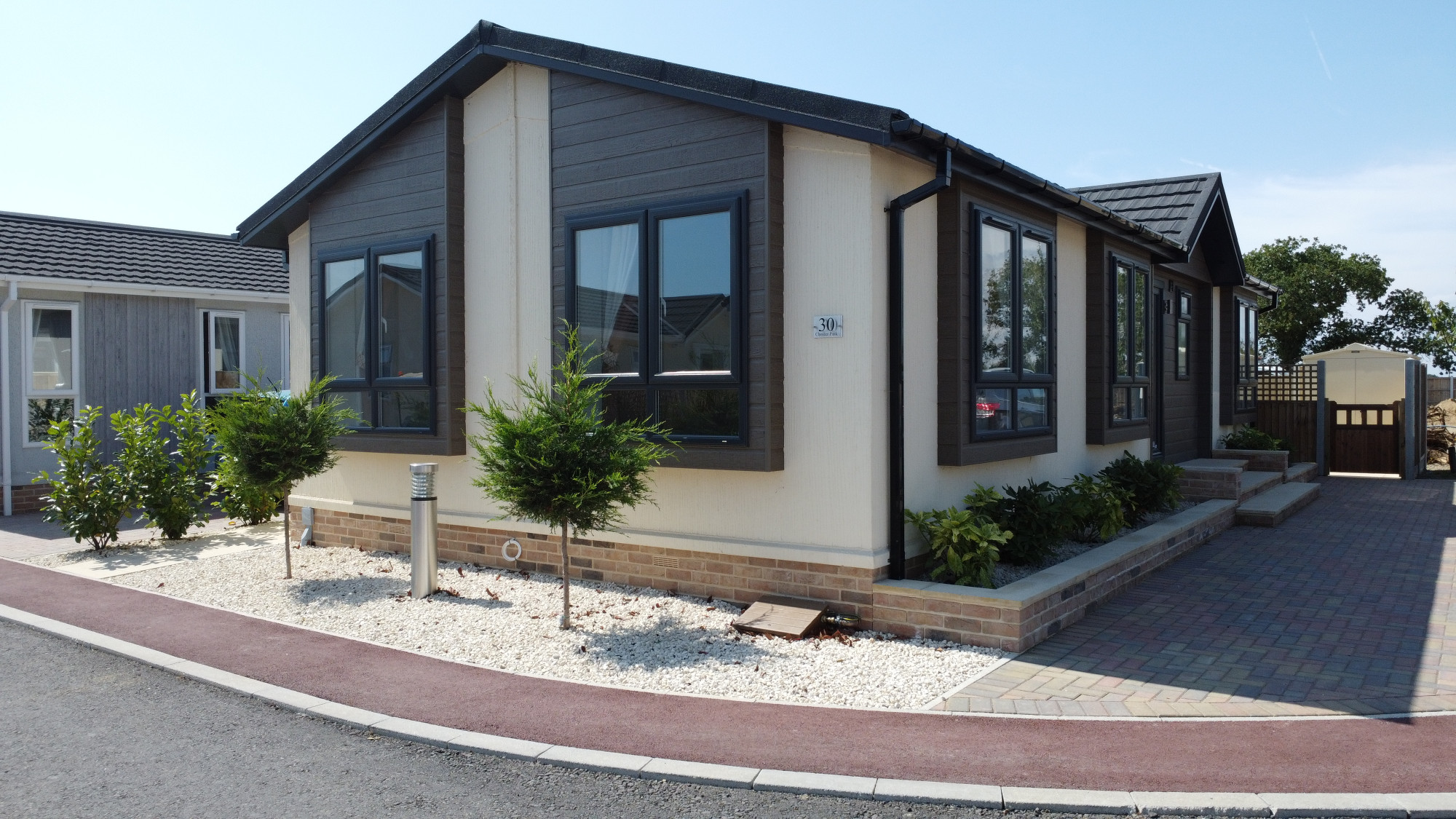 This brand-new, modern-furnished Omar Image (40'x20') luxury park home is perfect for those looking for a detached, easy-to-maintain, bungalow-style property. The home features a spacious kitchen and dining room, comfortable living room with an electric fireplace, two double bedrooms, an en suite and bathroom. The landscaped exterior boasts a landscaped development and parking.