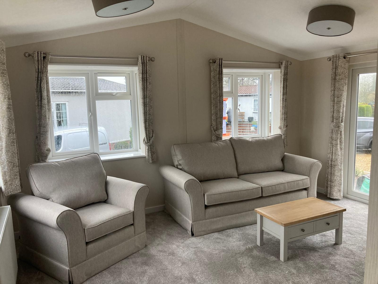 This brand-new, modern-furnished Omar Regency (39'x16') luxury park home is perfect for those looking for a detached, easy-to-maintain, bungalow-style property. The home has a modern kitchen with integrated appliances, dining area and comfortable living room. The home has two double bedrooms and a bathroom. The home is located on a landscaped plot with a garden space and driveway.