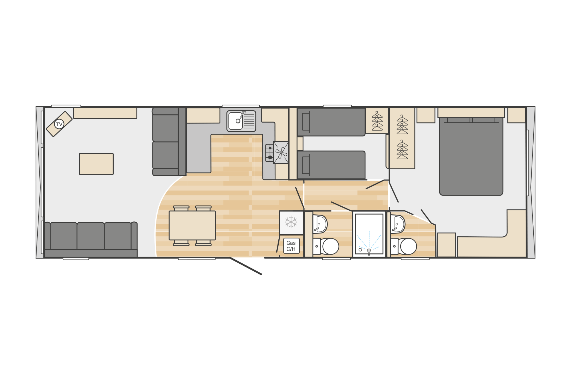 This brand new, modern-furnished Swift Bordeaux (38'x12') luxury lodge is perfect for those looking for a detached, easy to maintain, bungalow-style property. The property has a modern, open-plan kitchen, living and dining space, one double bedroom, one twin bedroom and bathroom and a second toilet.