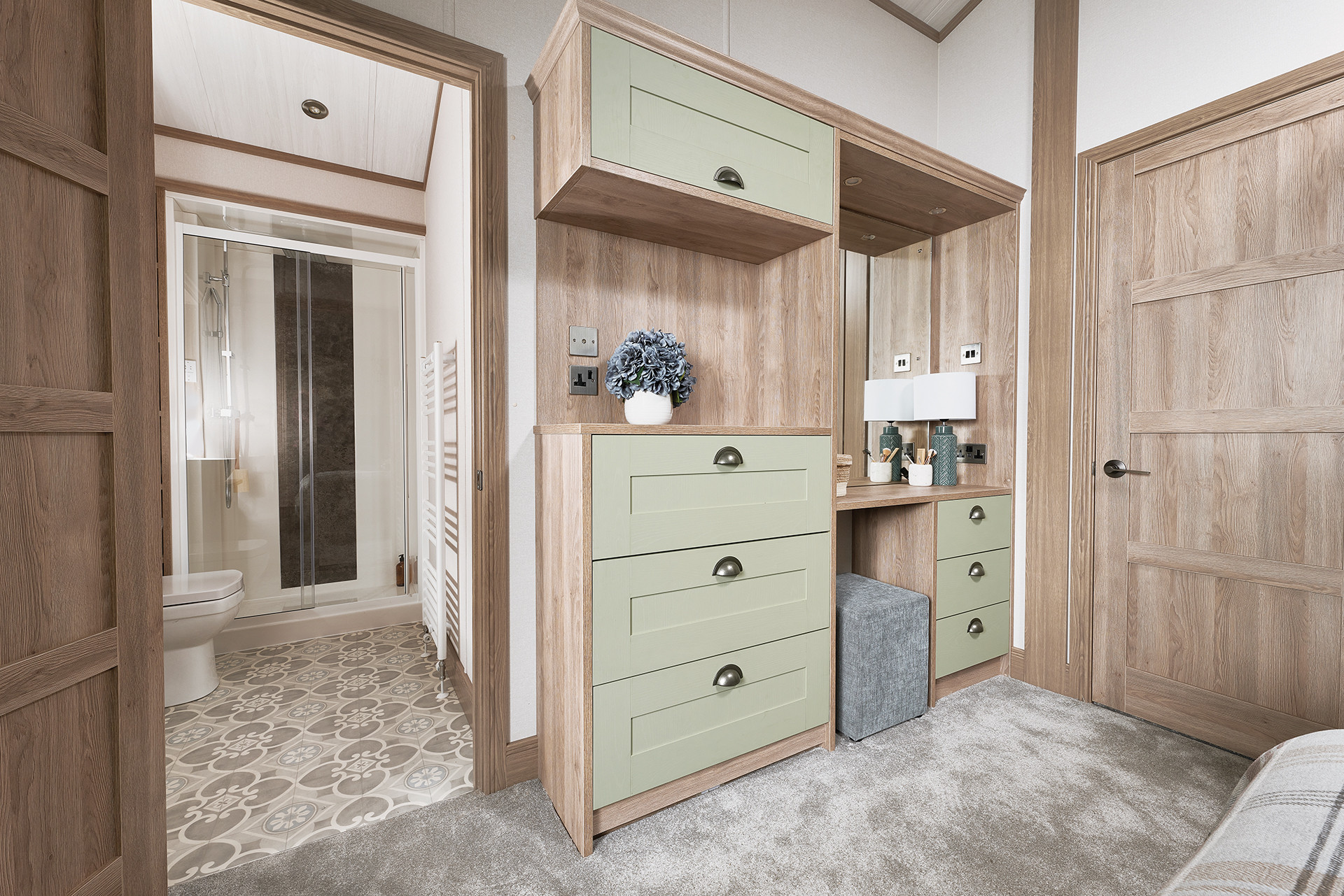 This brand new, modern-furnished ABI Harrogate (41'x20') luxury park home is perfect for those looking for a detached, easy to maintain, bungalow-style property. This home features fitted kitchen with integrated appliances, and an open plan living and dining area. The home has two bedrooms, an en suite and a family bathroom. Each home has at least one parking space and a garden shed.