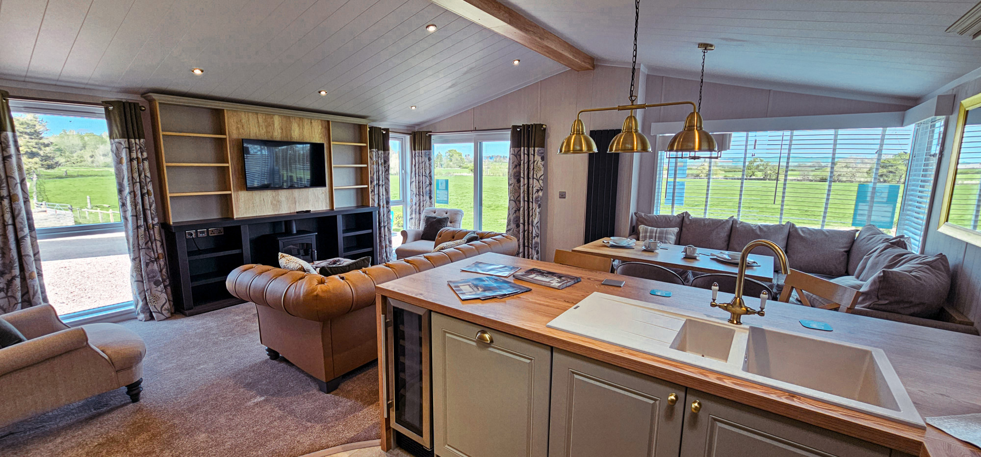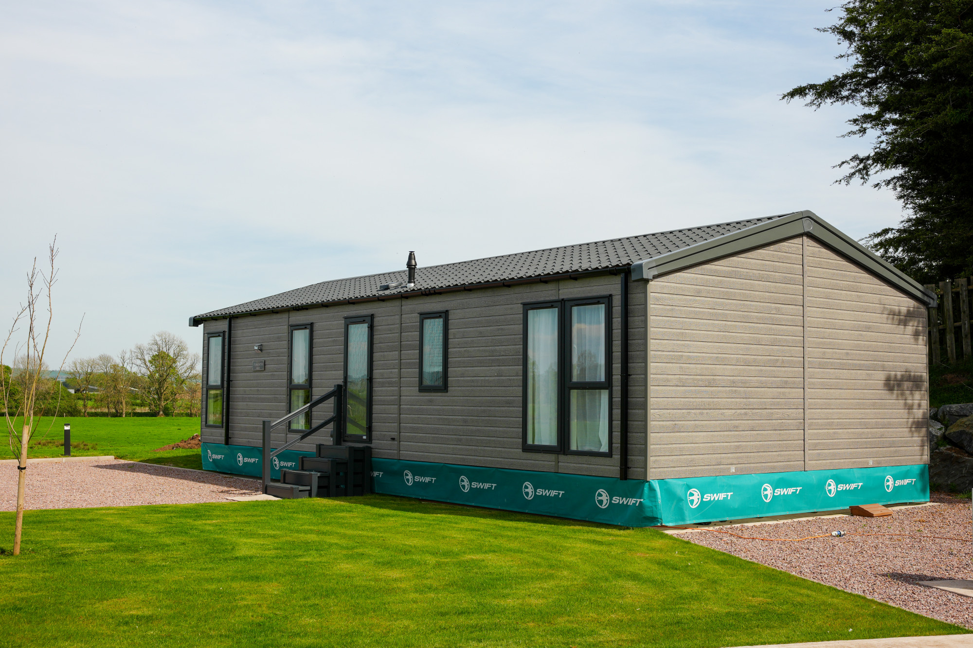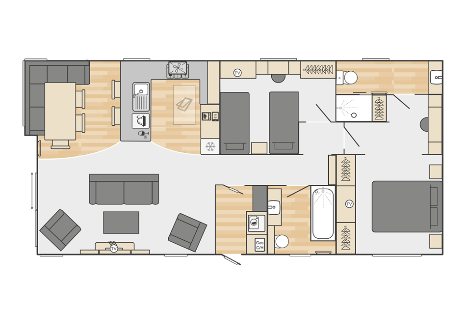 This brand new, modern-furnished Swift Toronto (43'x20') luxury lodge is perfect for those looking for a detached, easy to maintain, bungalow-style property. The lodge has an open plan kitchen, dining and living room, two bedrooms, an en suite and a bathroom.