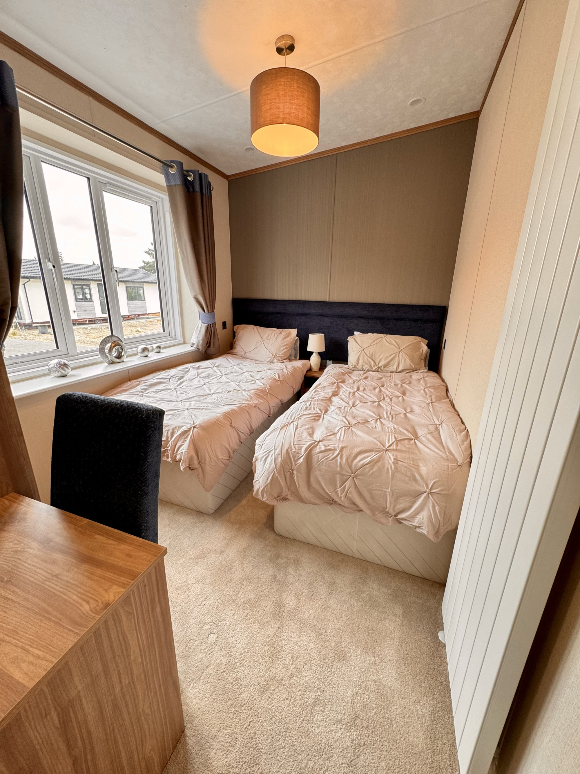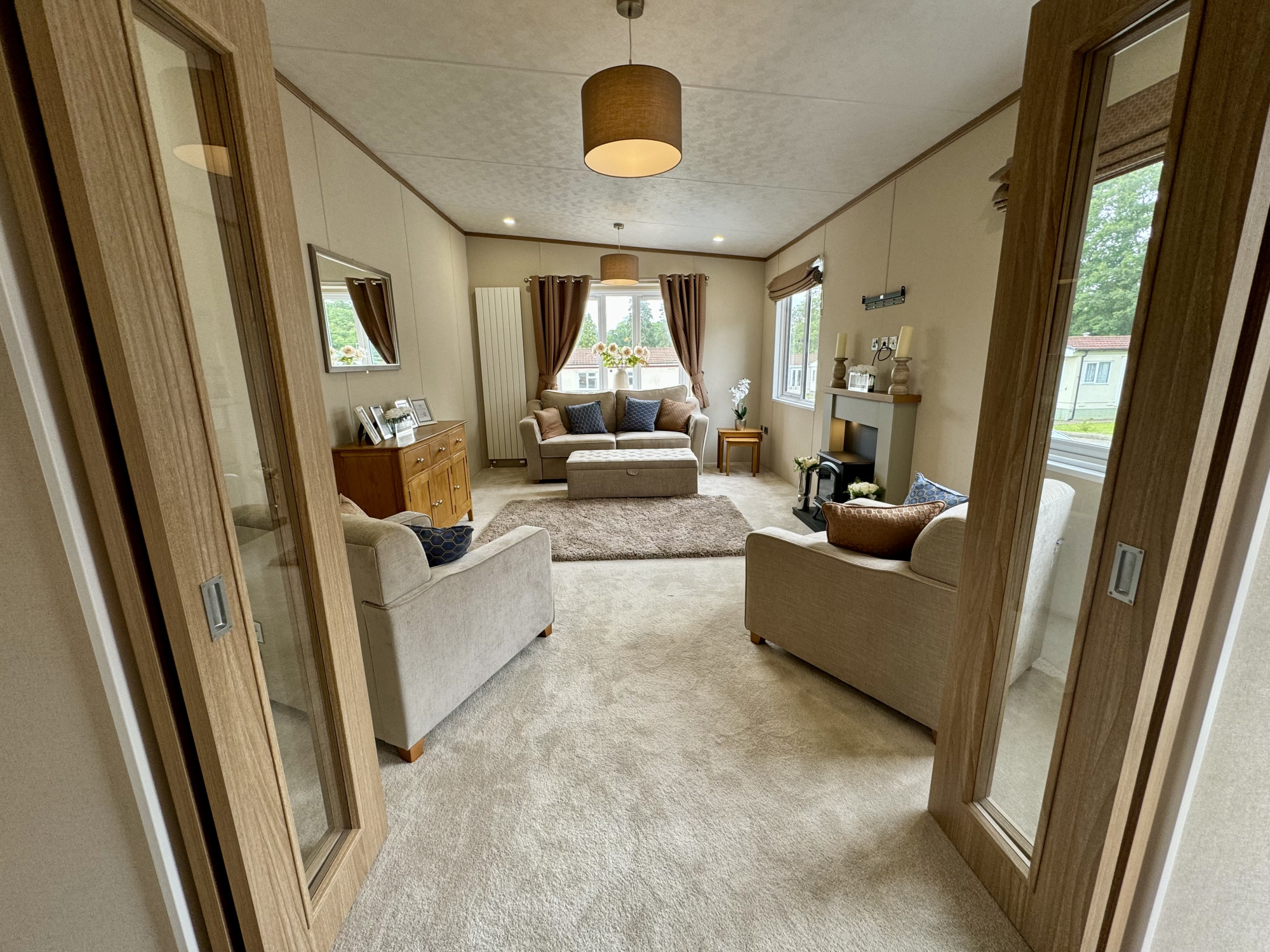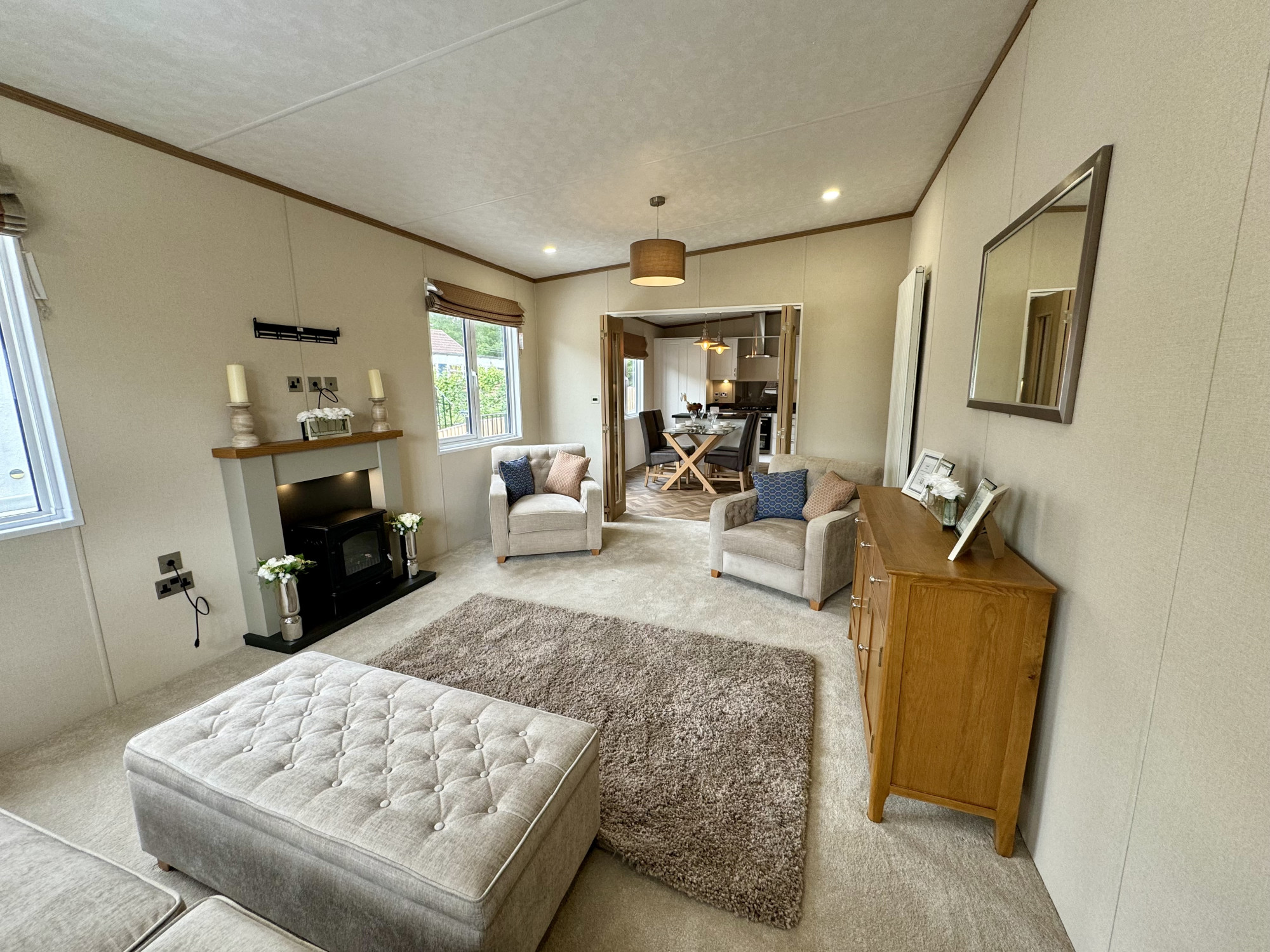 This brand-new, modern-furnished Pemberton (40'x20') luxury park home is perfect for those looking for a detached, easy-to-maintain, bungalow-style property. The home has a modern spacious kitchen with integrated appliances, a comfortable living room with an electric fireplace. The are two bedrooms, the master has built in wardrobes and an en suite, there is a second bedroom with twin beds. The exterior includes a parking space and an easy to maintain garden.