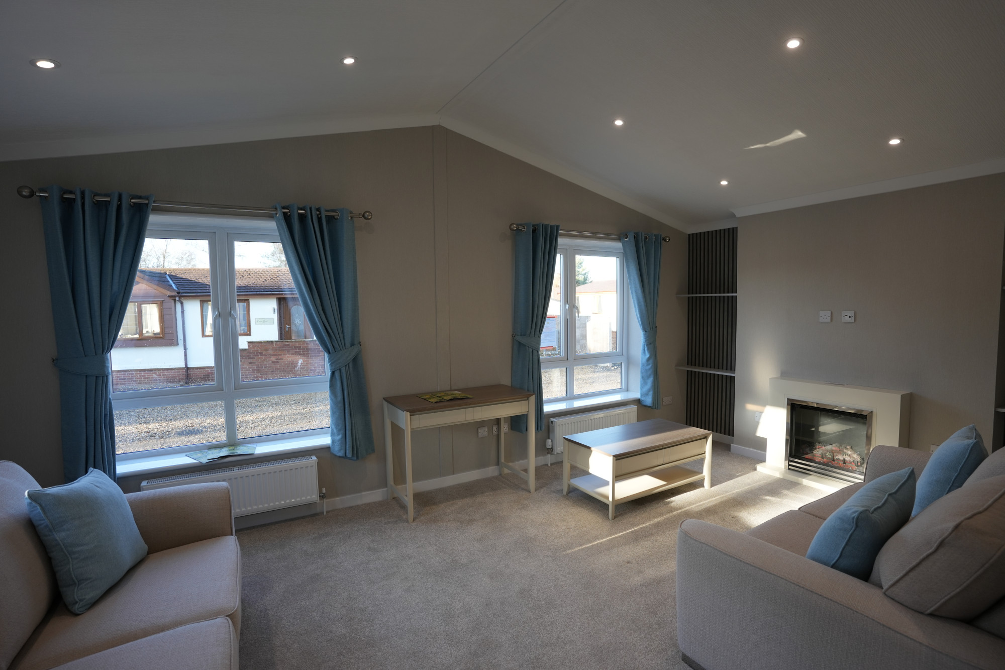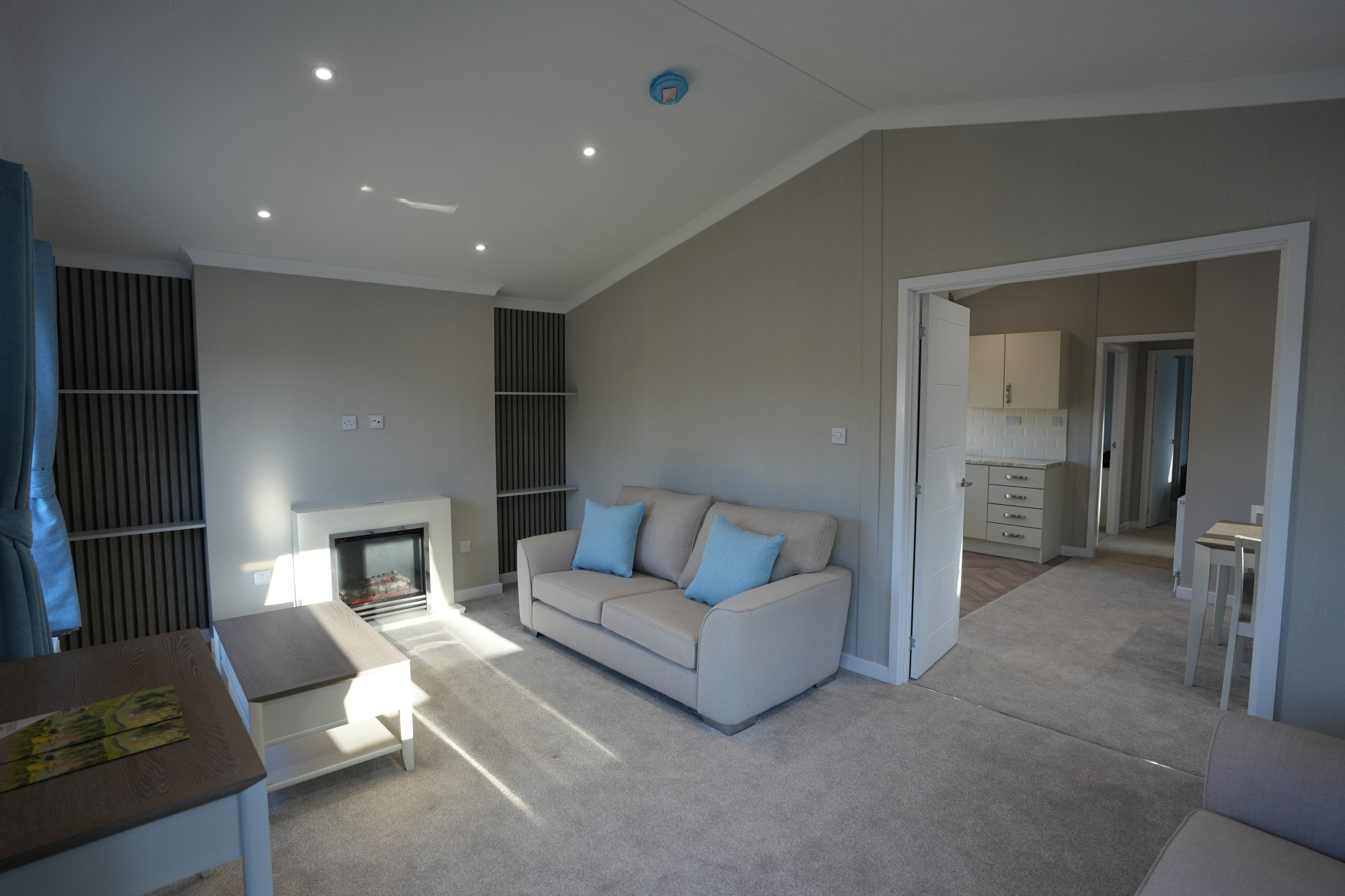 This brand-new, modern-furnished Omar Image (40'x20') luxury park home is perfect for those looking for a detached, easy-to-maintain, bungalow-style property. The home has a modern kitchen with integrated appliances, comfortable living room with electric fireplace, two double bedrooms, an en suite and a bathroom. The home also has parking for 2 cars.