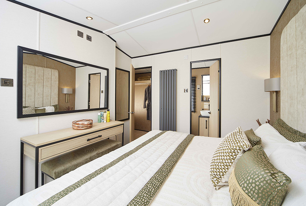This brand new, modern-furnished Carnaby Grantley Lodge (42'x14') luxury lodge is perfect for those looking for a detached, easy to maintain, bungalow-style property. The lodge has an open plan kitchen, dining and living area, two bedrooms and two bathrooms.