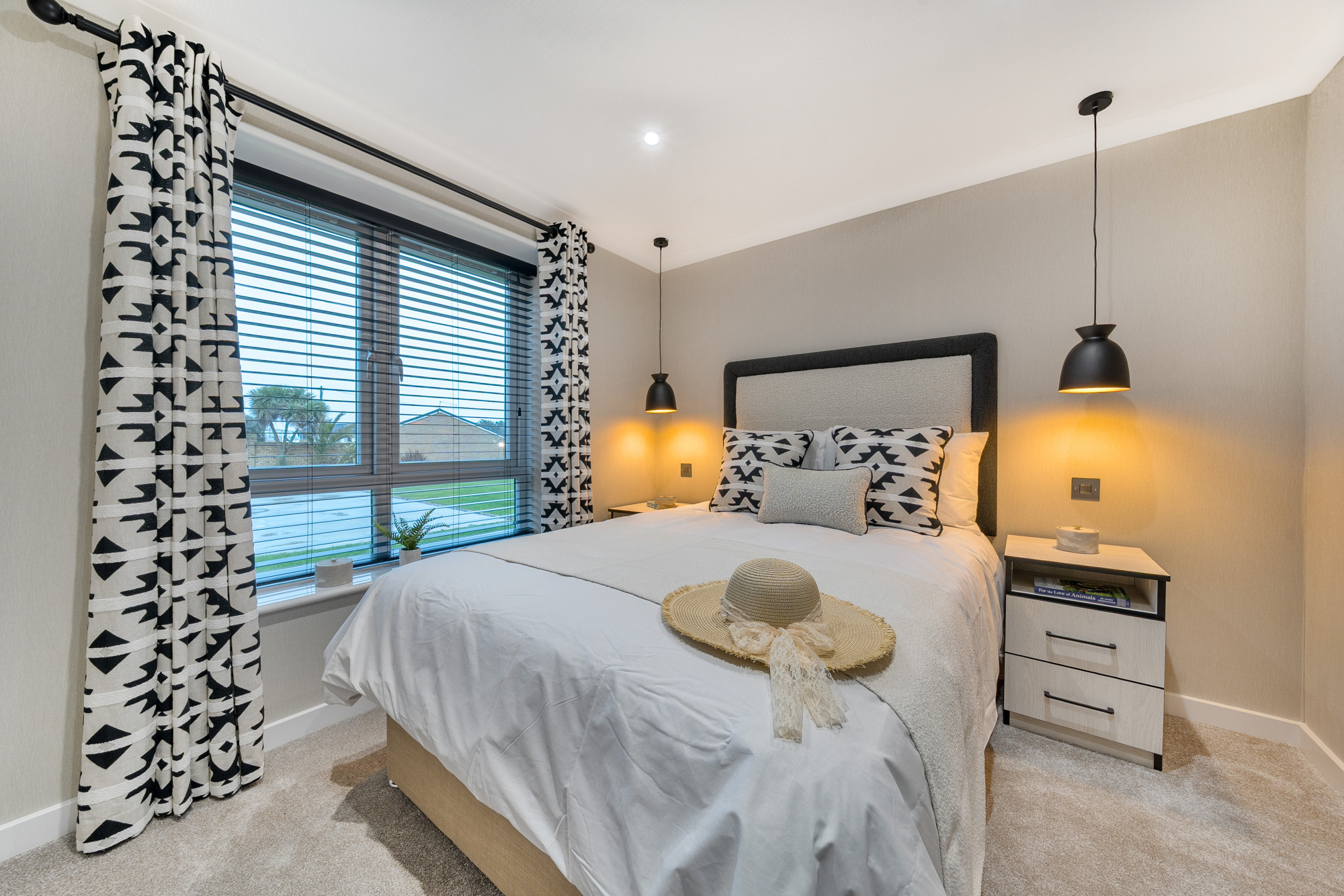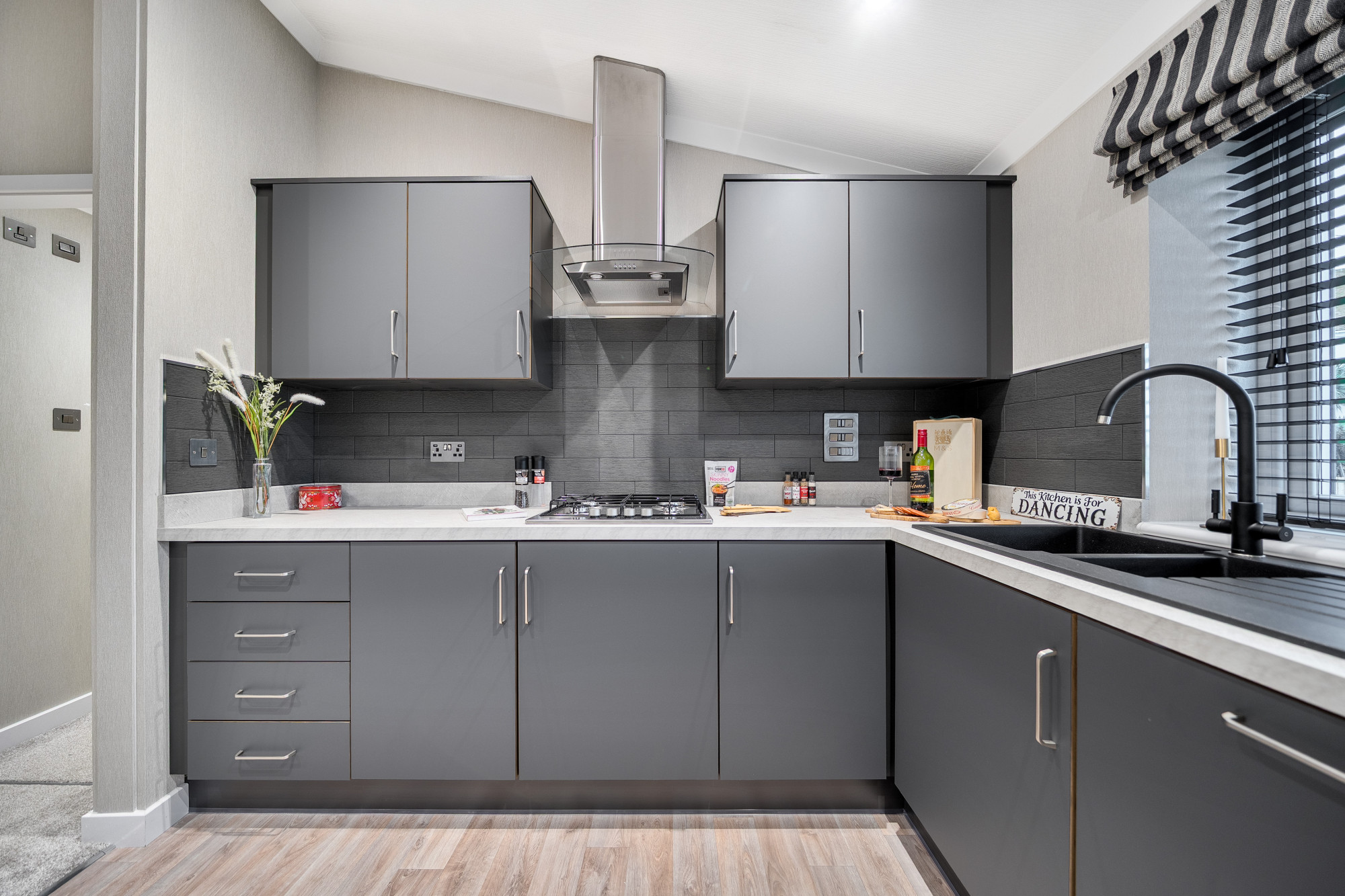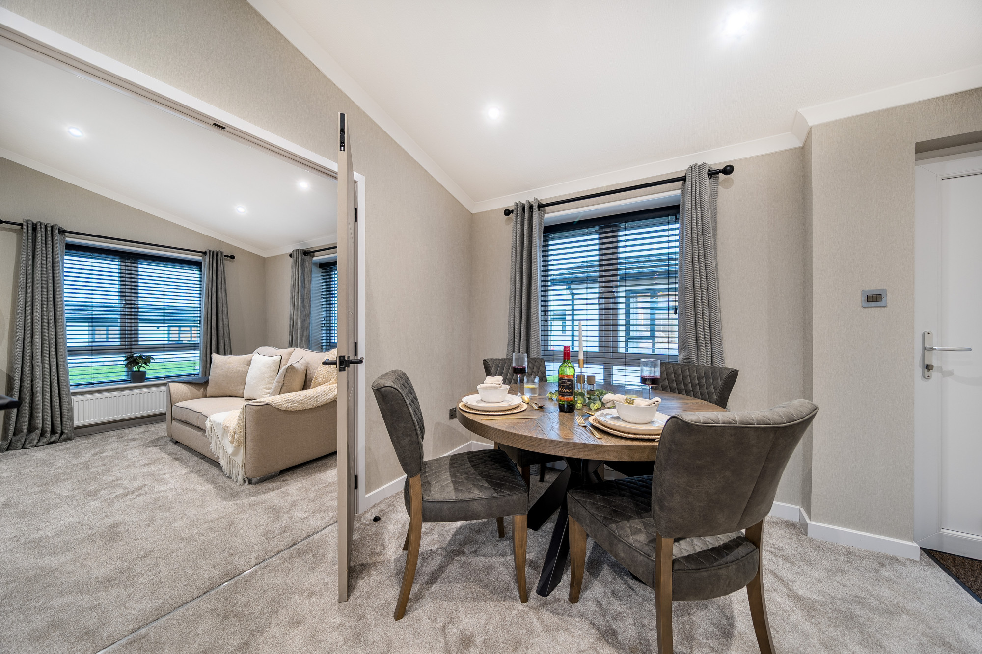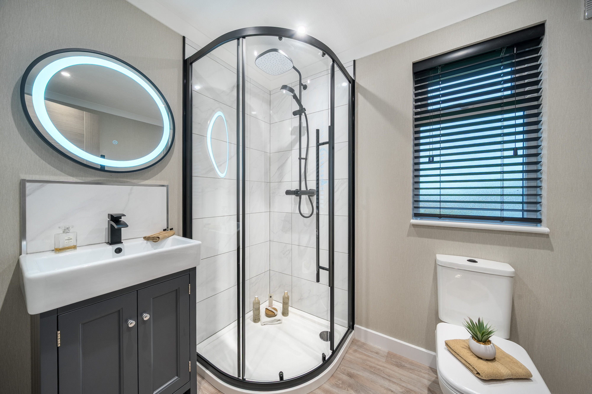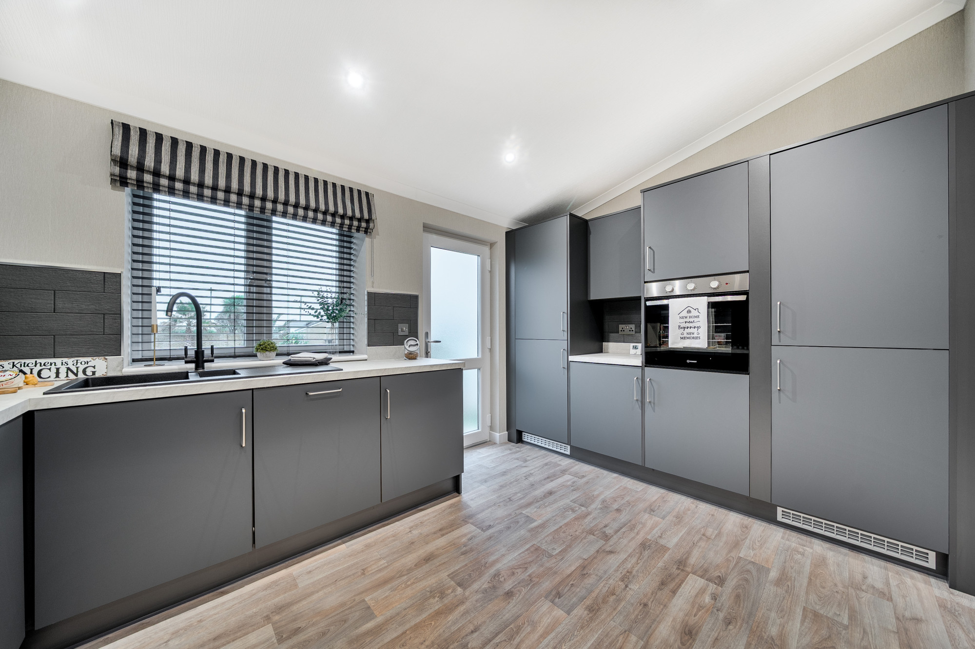 This brand new, modern-furnished luxury Omar Image (45'x20') park home is perfect for those looking for a detached, easy-to-maintain, bungalow-style property. The home has a spacious kitchen with integrated appliances, dining area and comfortable living room. The master bedroom has an en suite and dressing area, there is a second double bedroom and a bathroom.
