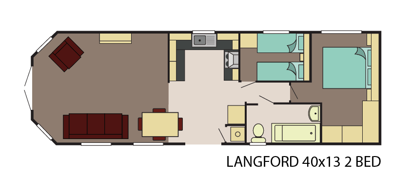 This brand-new, modern-furnished Delta Langford (41'x14') luxury lodge is perfect for those looking for a detached, easy-to-maintain, bungalow-style property. The lodge has an open plan kitchen and living area, one double bedroom, one single bedroom and a bathroom.