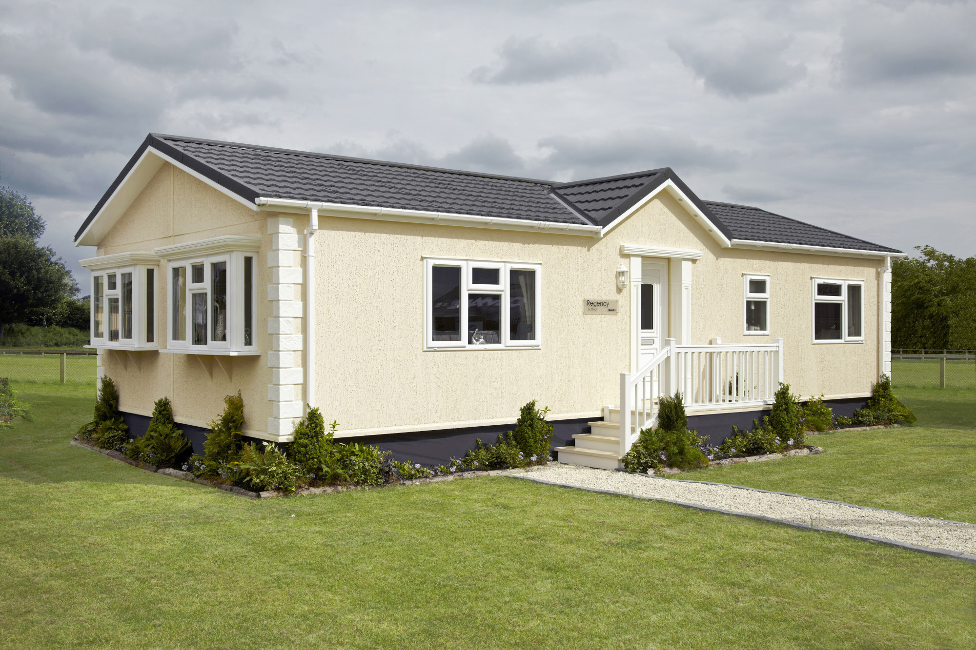 This brand new, modern-furnished Omar Regency (40'x14') park home is perfect for those looking for a detached, easy to maintain, bungalow-style property. The home has a kitchen, living and dining room, two bedrooms, and a bathroom