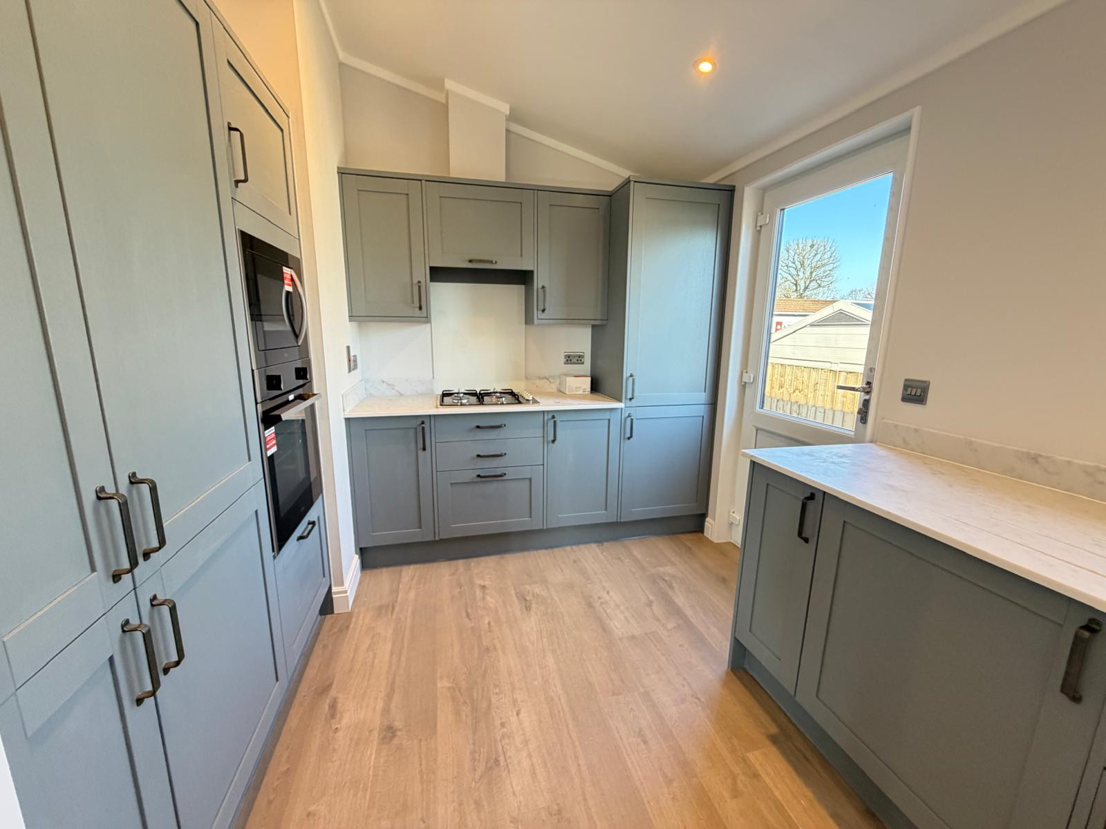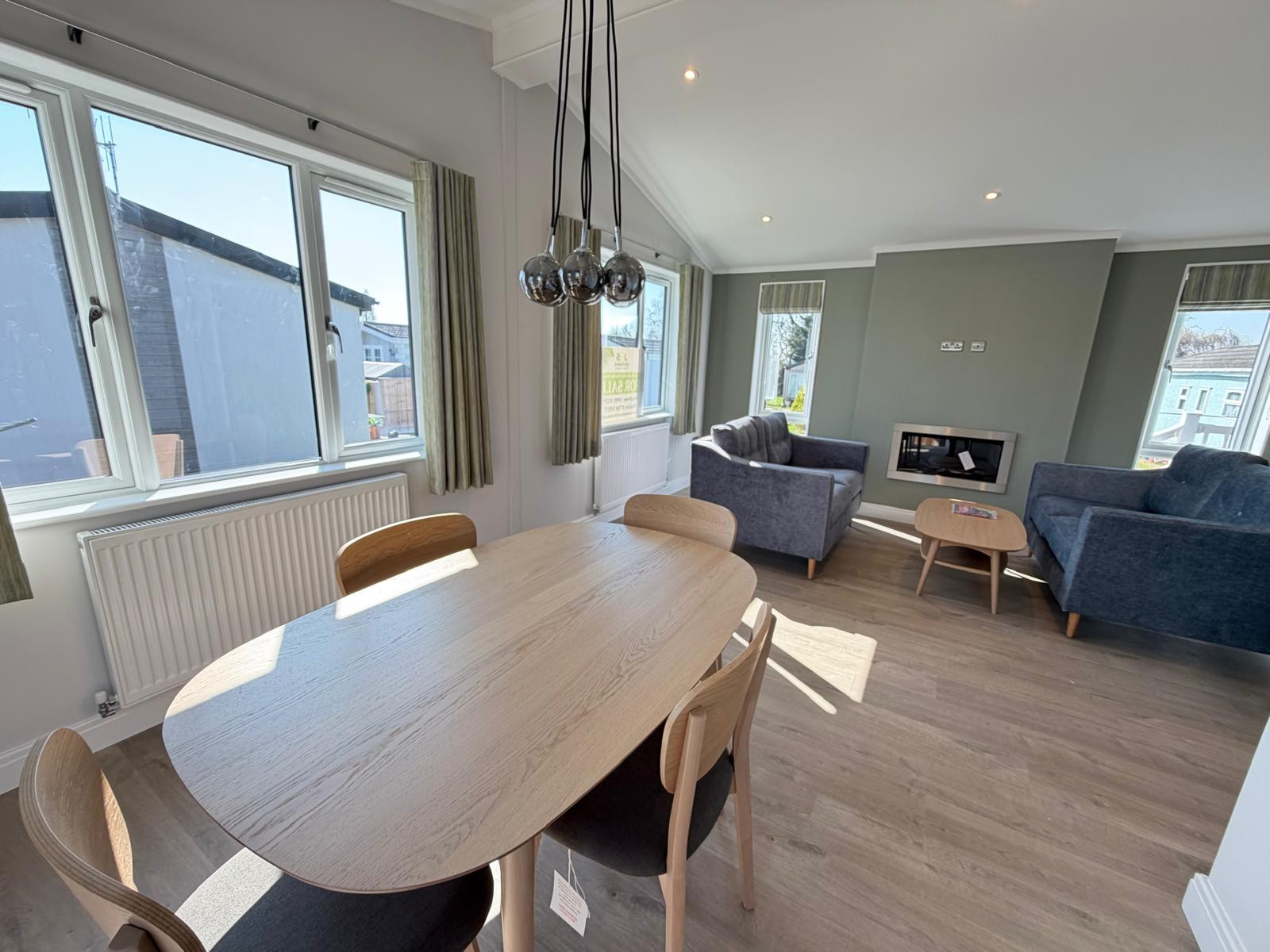 This brand new, modern-furnished Harbur H4 (40'x20') luxury park home is perfect for those looking for a detached, easy to maintain, bungalow style retirement property. The home features a modern, fitted kitchen with integrated appliances that lead into a living room/dining area with comfortable furniture. There are two double bedrooms, an en suite and a bathroom.