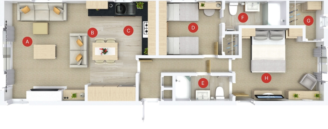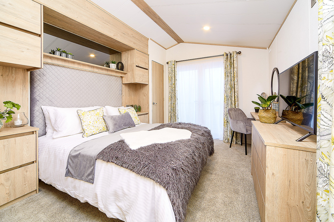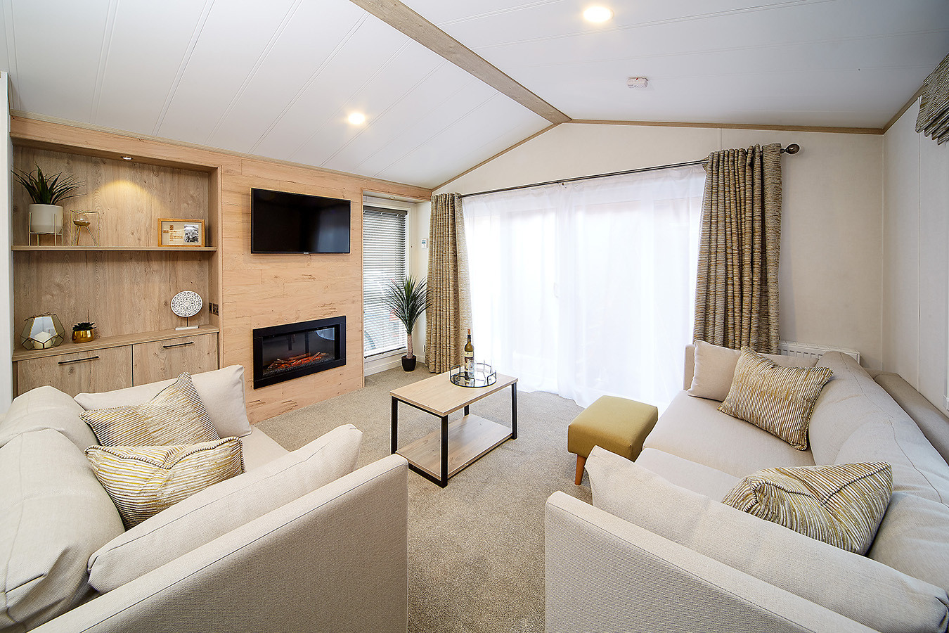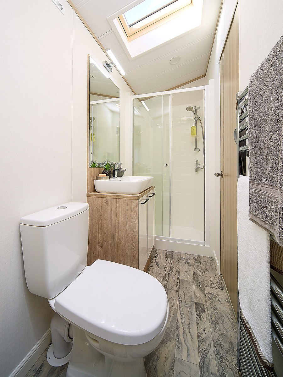 This brand new, modern-furnished Atlas Jasmine (43'x14') luxury lodge is perfect for those looking for a detached, easy to maintain, bungalow-style property. The lodge features an open plan layout, two bedrooms, an en suite and a bathroom. The landscaped exterior boasts two parking spaces. There are additional options to acquire decking and paving through the park operator.