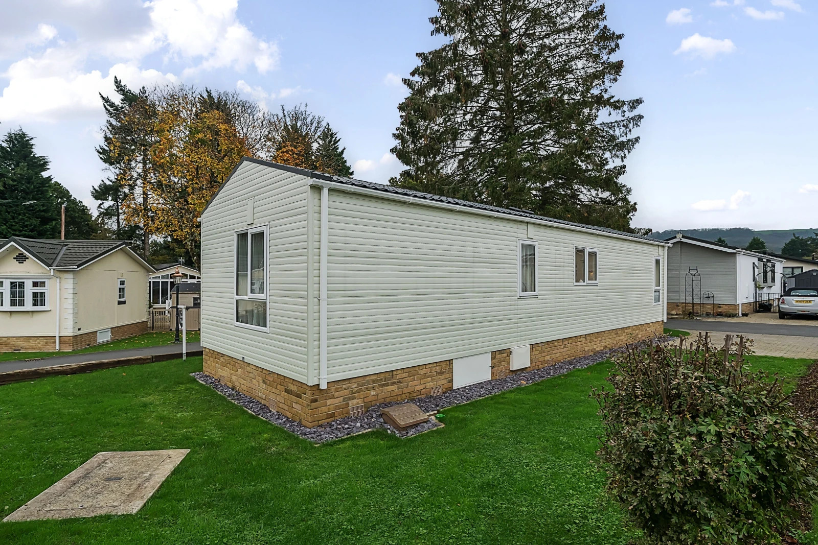 This is an exclusive development of detached lodges, with a 12-month leisure license. It has a wonderful rural location with excellent transport links and nearby shopping and amenities. Set in picture-postcard surroundings, the pet friendly park has very spaced out and landscaped plots and is tailor made for the over 45s.