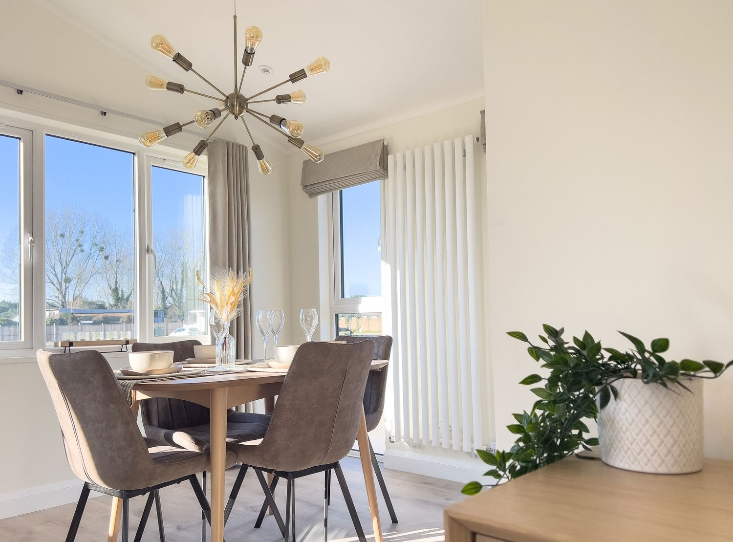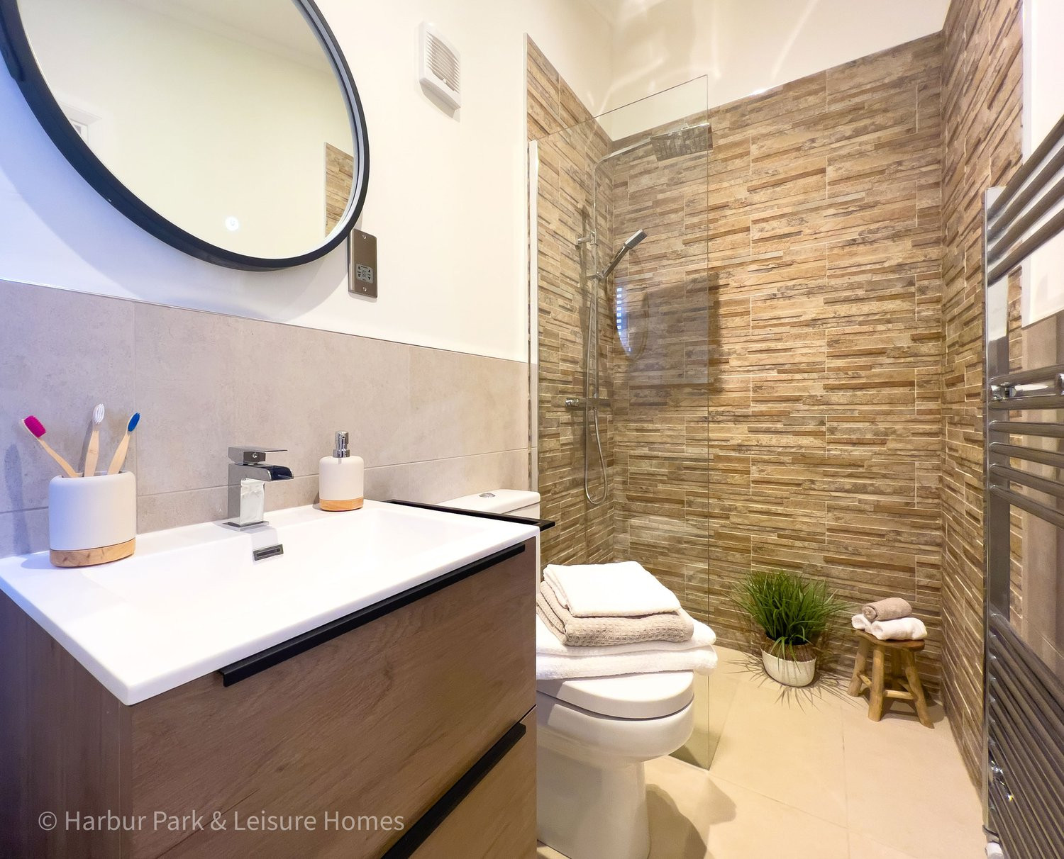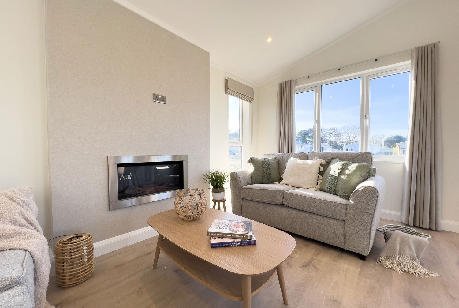 This brand-new, modern-furnished Harbur H4 (40'x20') luxury park home is perfect for those looking for a detached, easy-to-maintain, bungalow-style property. The home has a spacious kitchen with integrated appliances, dining area and comfortable living room. The master bedroom has an en suite and dressing area, there is a second double bedrooms and bathroom. Each home has a driveway for 2 cars.