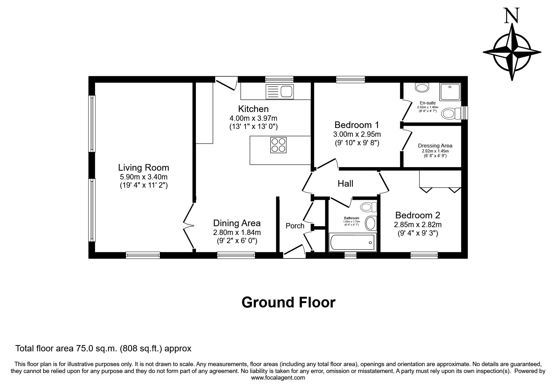 - Two bedrooms