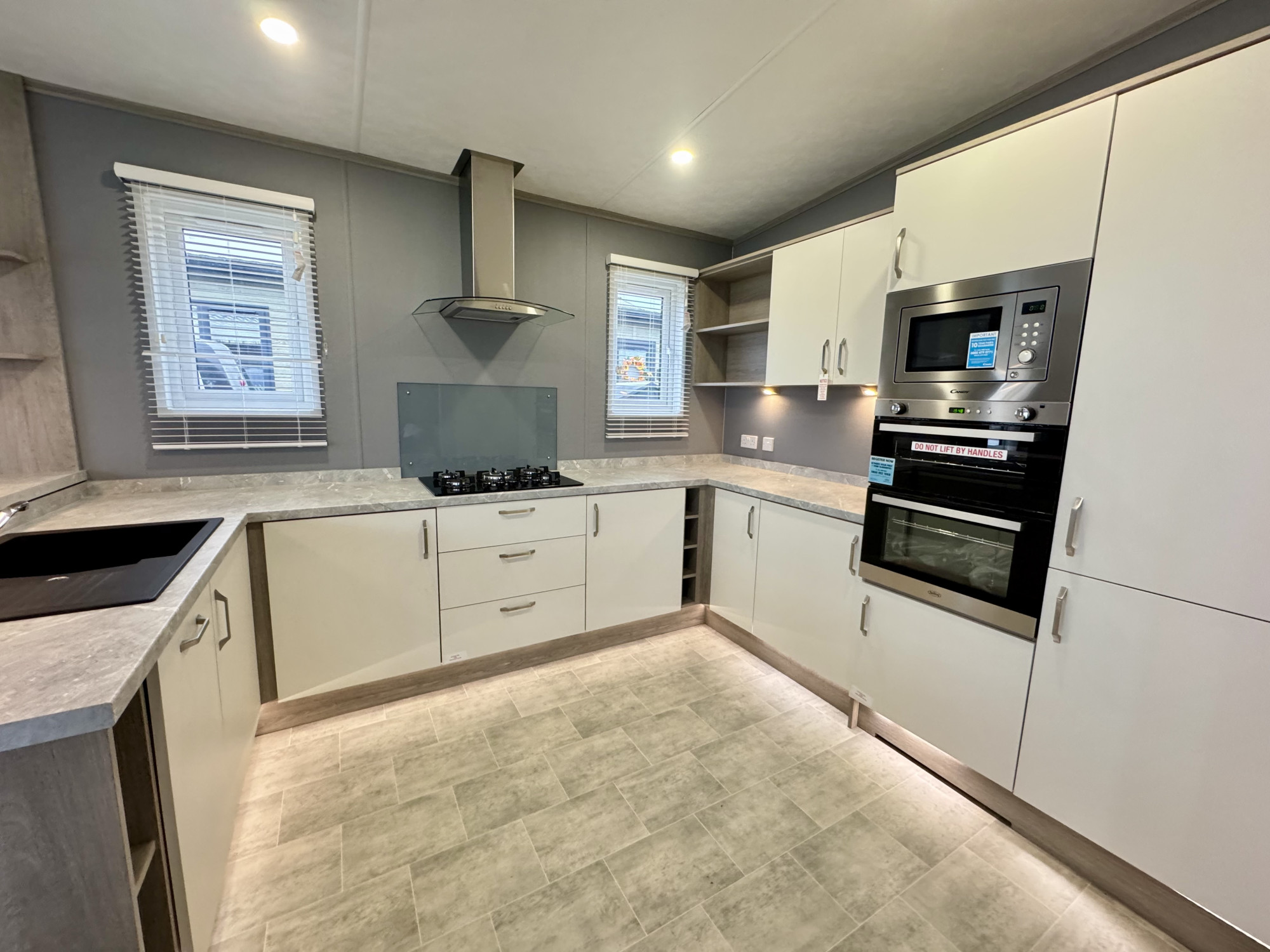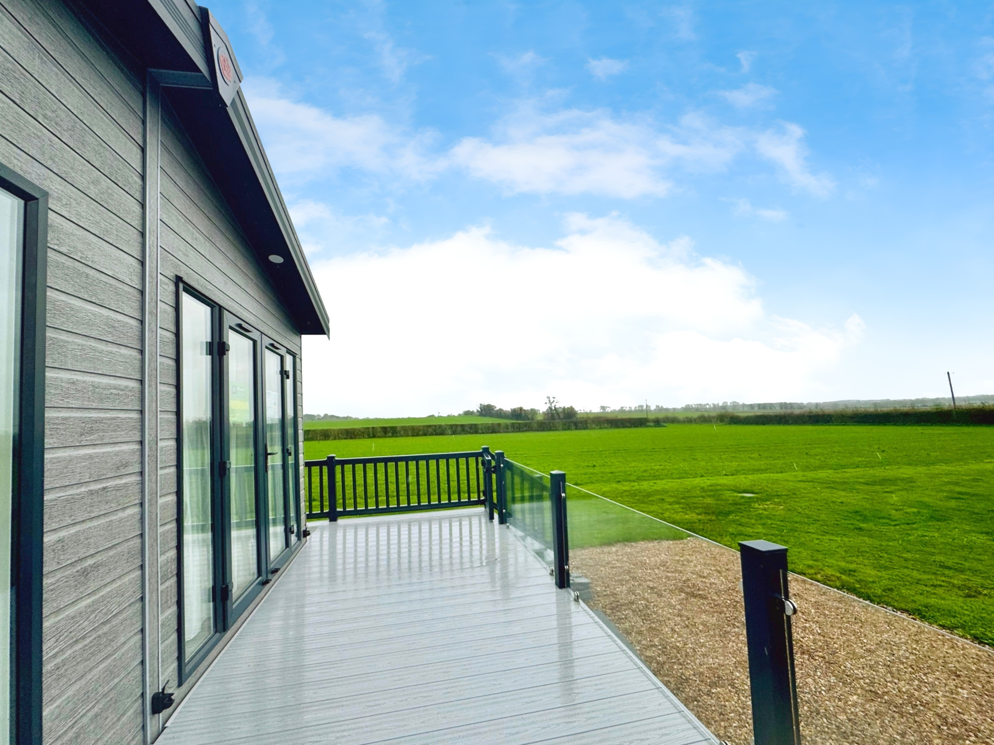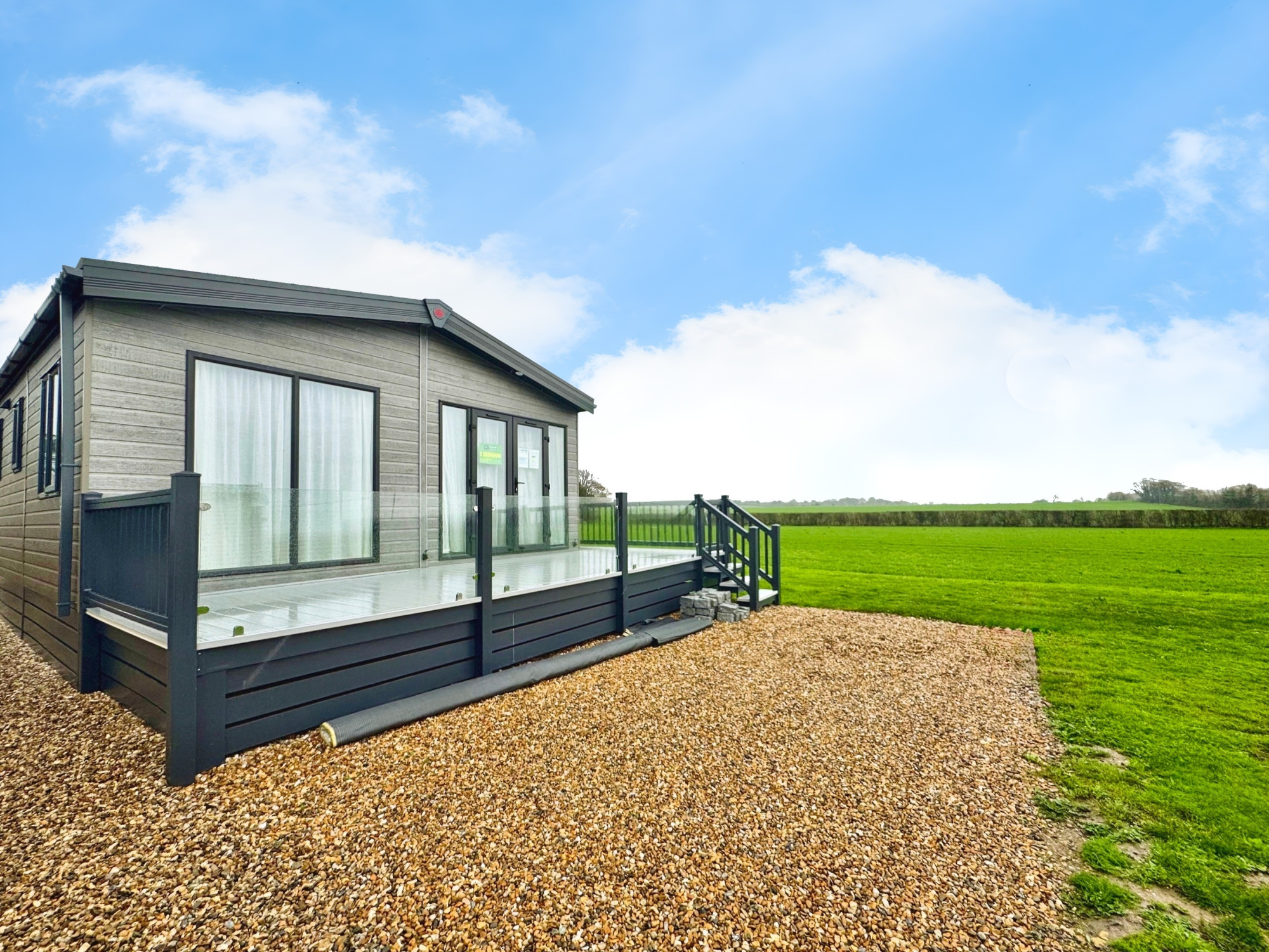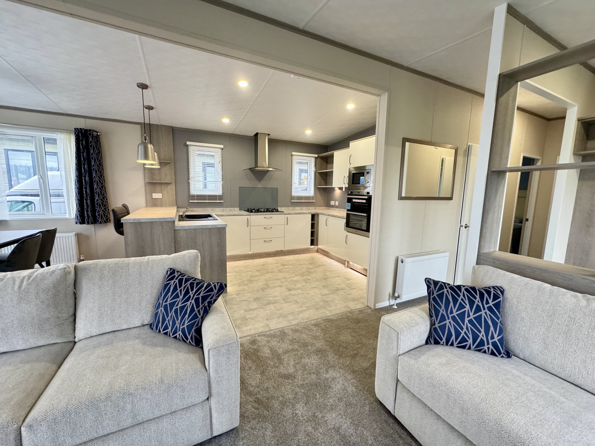 This brand new, modern-furnished Skydale (40'x20') luxury lodge is perfect for those looking for a detached, easy to maintain, bungalow-style property. The lodge has an open plan layout, a modern kitchen with integrated appliances, comfortable living area and French doors leading onto the decking. There are two bedrooms and two bathrooms.