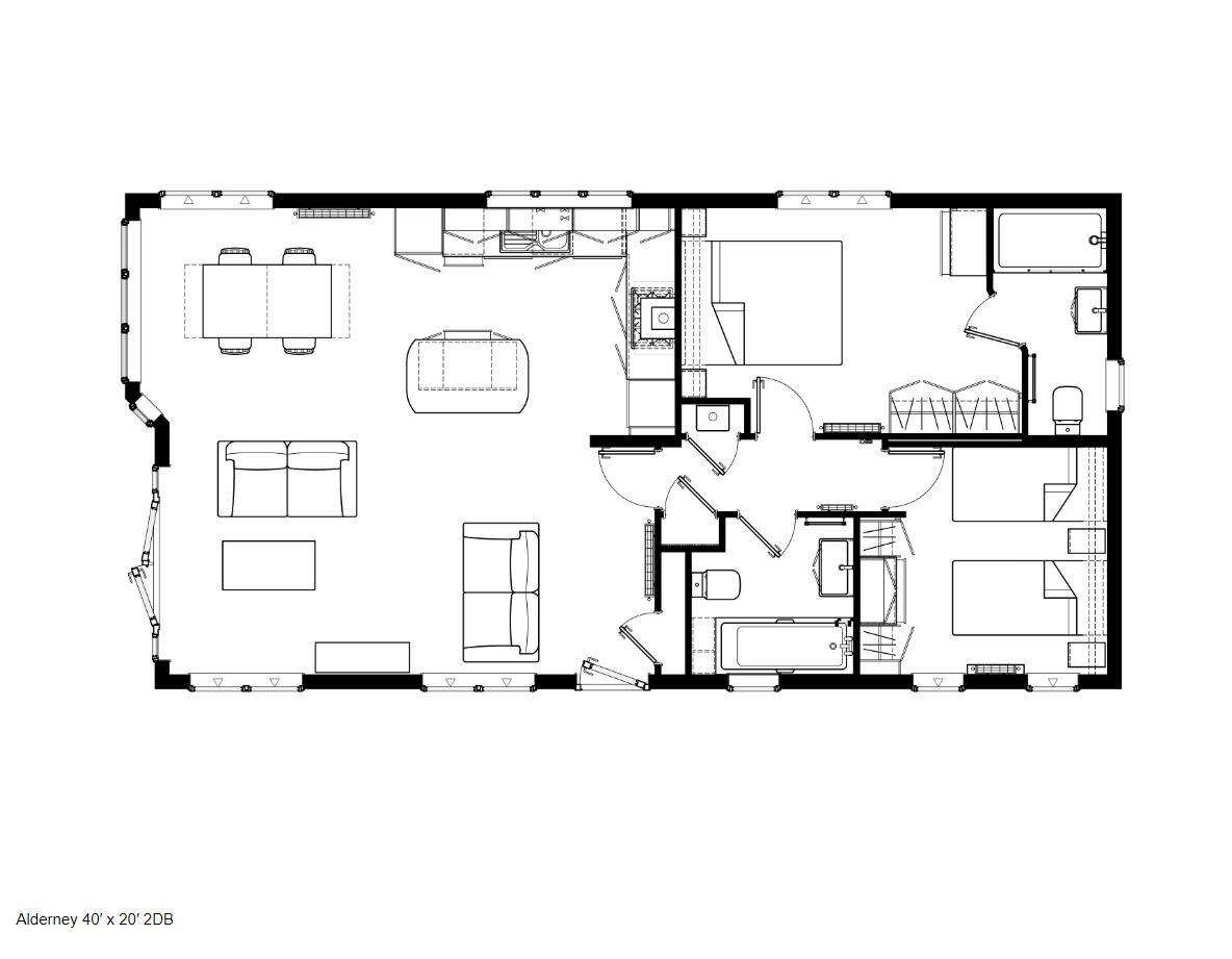 This brand-new, modern-furnished Omar Alderney (40'x20') luxury lodge is perfect for those looking for a detached, easy-to-maintain, bungalow-style leisure property. The lodge has an open plan kitchen, living and dining area with integrated appliances and large windows and doors leading to the garden. There is one double bedroom with an en suite, a second twin bedroom and a bathroom. Each lodge is crafted to the highest residential standard (BS 3632), with premium finishes, spacious open-plan living areas and thoughtful layouts that fill your home with natural light. Luxurious touches such as fitted wardrobes, feature lighting and carefully selected materials ensure every day feels like a holiday.