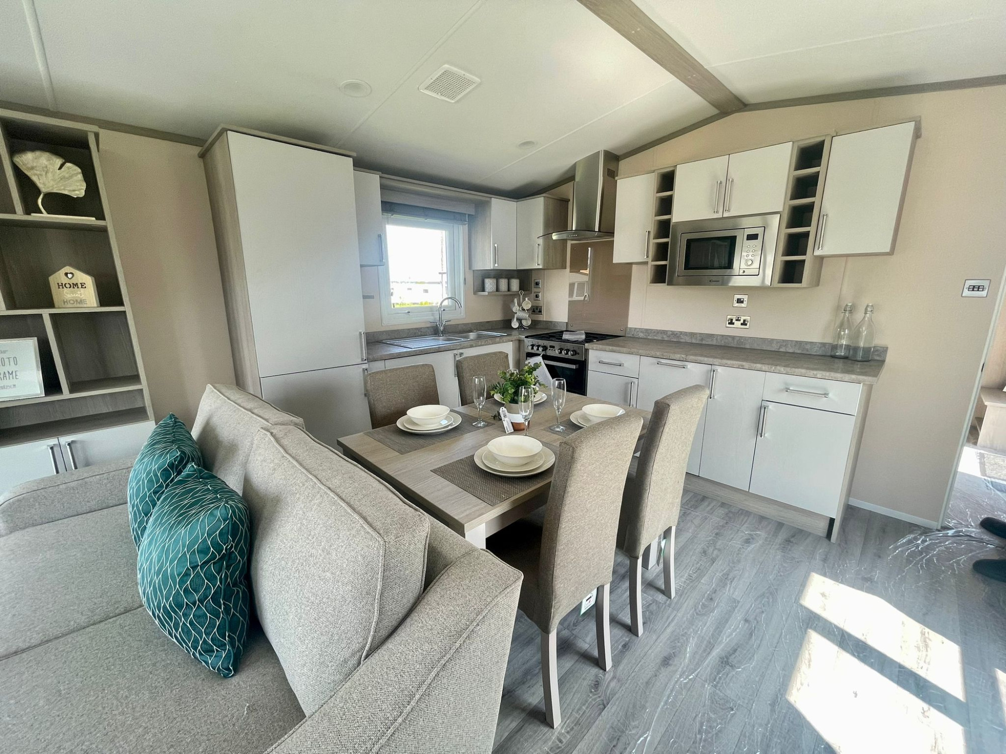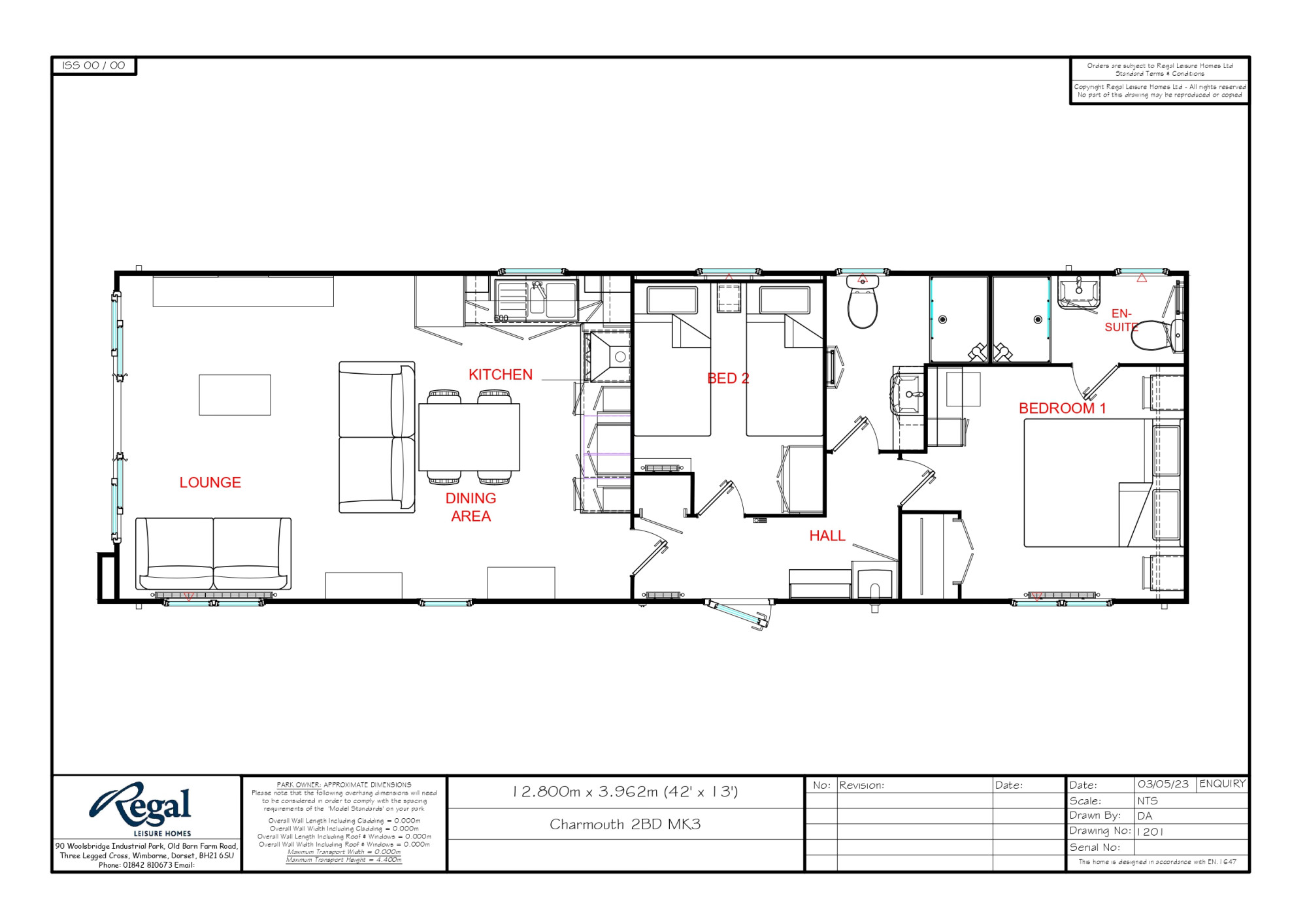 This brand new, modern-furnished Regal Charmouth (42'x13') luxury lodge is perfect for those looking for a detached, easy to maintain, leisure property. The lodge has an open plan kitchen, dining and living area, two bedrooms and two bathrooms. The landscaped exterior boasts a block paved driveway, and decking can be added at owners expense.
