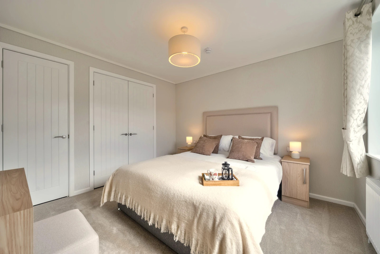 This brand new, modern-furnished luxury Sonata (40'x14') park home is perfect for those looking for a detached, easy to maintain, bungalow style property. The home has an open plan kitchen, dining and living room, with patio doors and integrated appliances. There is one double bedroom, a twin bedroom and a bathroom.