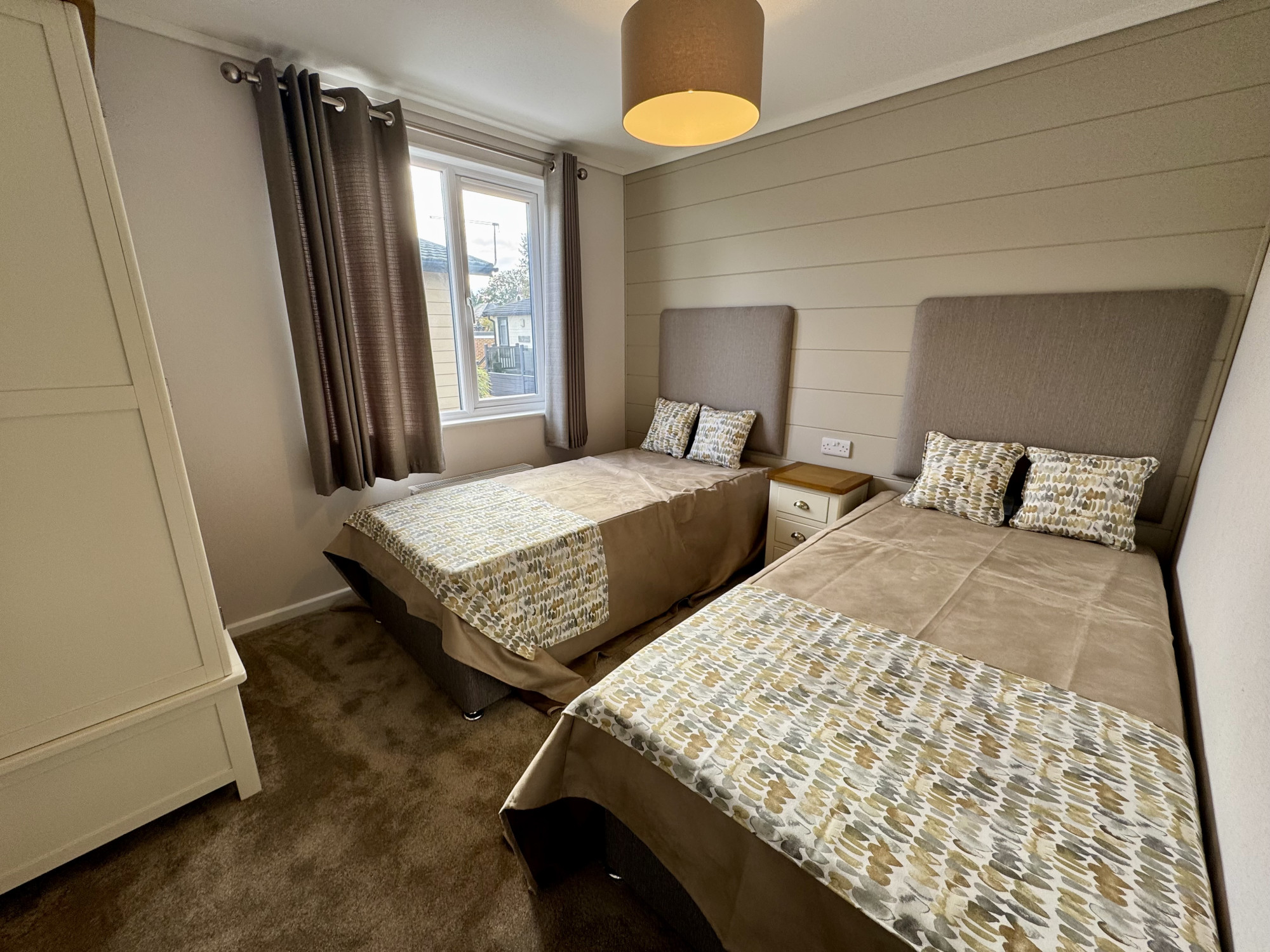 This brand new, modern-furnished Prestige Buckleigh (40'x20') luxury park home is perfect for those looking for a detached, easy to maintain, bungalow-style property. The home has a modern kitchen with integrated appliances, dining area and living space. The master bedroom has an en suite and dressing area, there is a second bedroom with twin beds and a bathroom.