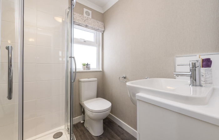 This pre-owned, modern Omar Regency (45'x20') luxury park home is perfect for those looking for a detached, easy-to-maintain, bungalow-style property. The home has a modern kitchen with integrated appliances and utility room, there is a dining area and comfortable living room with an electric fireplace. The master bedroom has a walk in wardrobe and en suite, there is a second double bedroom and a bathroom.