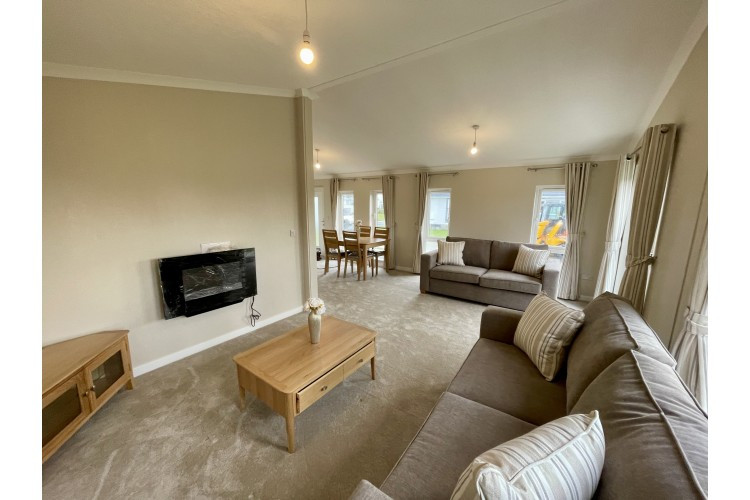 This brand new, modern-furnished Omar Newmarket (45'x20') luxury park home is perfect for those looking for a detached, easy to maintain, bungalow-style property. The home features a spacious kitchen and dining area, a separate living room with large windows, two double bedrooms and two bathrooms. The home has views over the river bank, decking and parking for two cars.