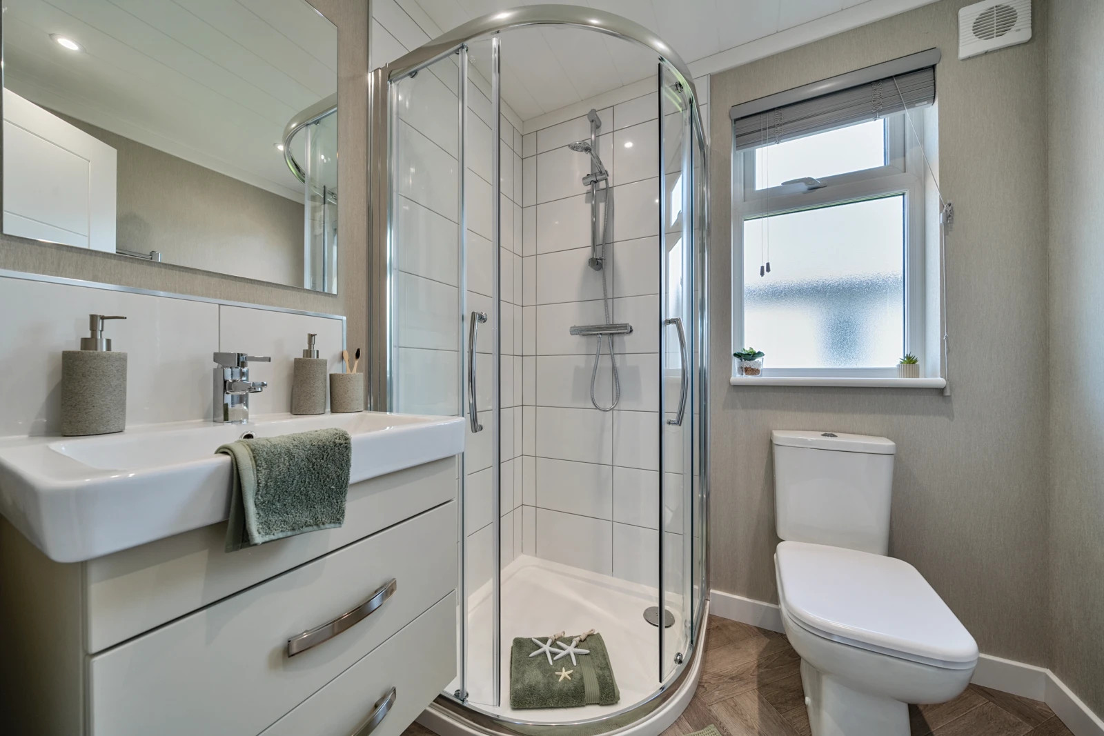 This brand-new, modern-furnished Omar Image (40'x20') luxury park home is perfect for those looking for a detached, easy-to-maintain, bungalow-style property. The home has a spacious kitchen with integrated appliances, and a dining area, leading to a comfortable living room. There are two double bedrooms, an en suite and a bathroom.