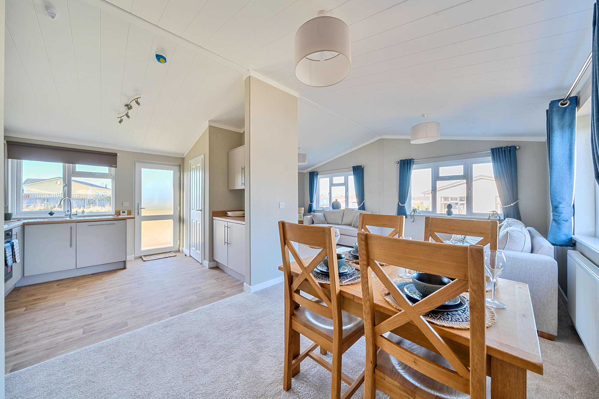This brand-new, modern-furnished Omar Westbury (40'x20') luxury park home is perfect for those looking for a detached, easy-to-maintain, bungalow-style property. The home has a spacious kitchen with integrated appliances, and a dining area, leading to a comfortable living room. There are two double bedrooms, an en suite and a bathroom.