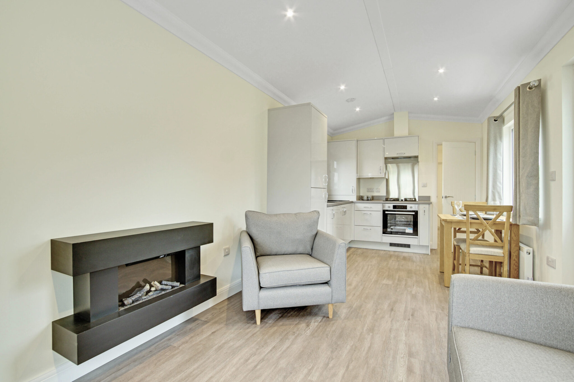 This brand new, modern-furnished Manor Lancaster (44'x10') luxury park home is perfect for those looking for a detached, easy to maintain, bungalow-style property. The home has an open plan living and kitchen area, two bedrooms and a bathroom with a walk in shower.
