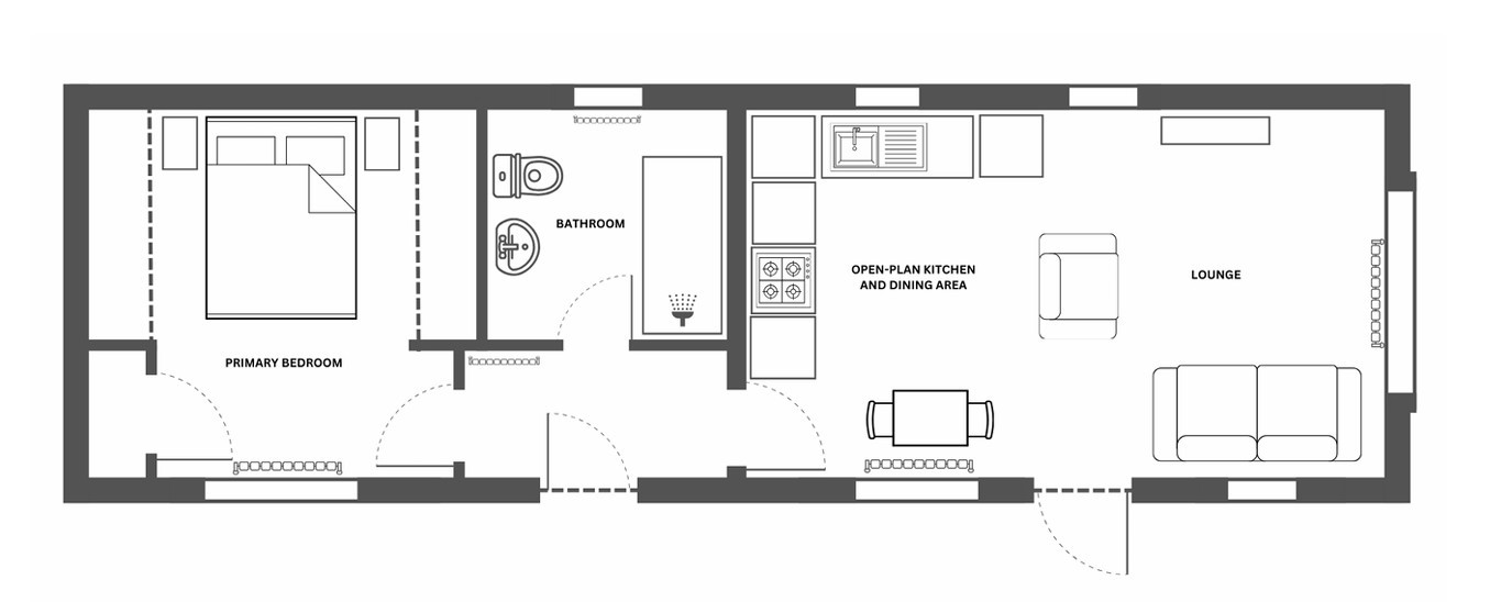 This brand new, modern-furnished Manor Lancaster (40'x12') luxury park home is perfect for those looking for a detached, easy to maintain, bungalow-style property. The home has an open plan living and kitchen area, one double bedroom and a bathroom. The home has a garden space with a shed.