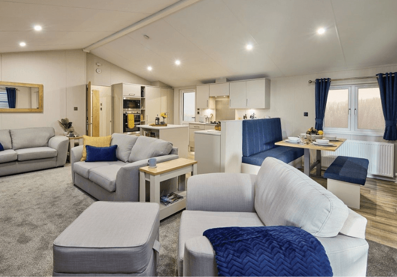 This brand-new, modern-furnished Willerby Haywood (40'x20') luxury park home is perfect for those looking for a detached, easy-to-maintain, bungalow-style property. The home has a kitchen with integrated appliances, dining area, and a comfortable living room with an electric fireplace. There are two bedrooms and a bathroom. The home also has a driveway.