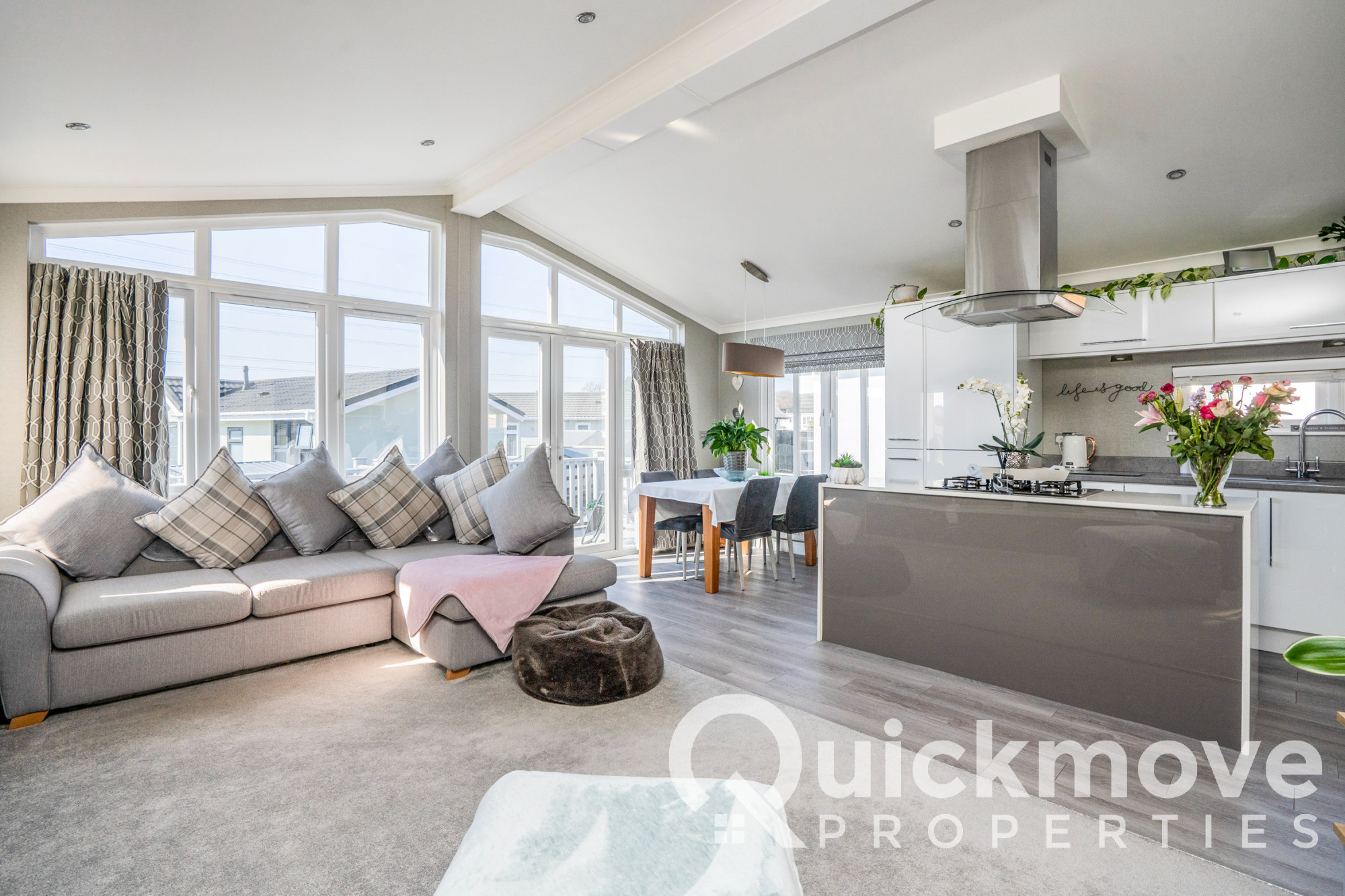 This pre-owned, modern Bella Vista (42'x20') park home is perfect for those looking for a detached, easy to maintain, bungalow style property. The home has a very social open plan layout with a vaulted ceiling. The kitchen has integrated appliances and an island, with large windows and doors leading to the decking at the from of the home. The home has two double bedrooms, an en suite and a bathroom. A water softener has been installed in the home and reflective film has been fitted to the windows. Movement sensor lights are at the front of the house and also in the garden. The home has an easy to maintain garden with artificial lawn, paving and raised beds. It is a secluded sun trap with a double composite shed.