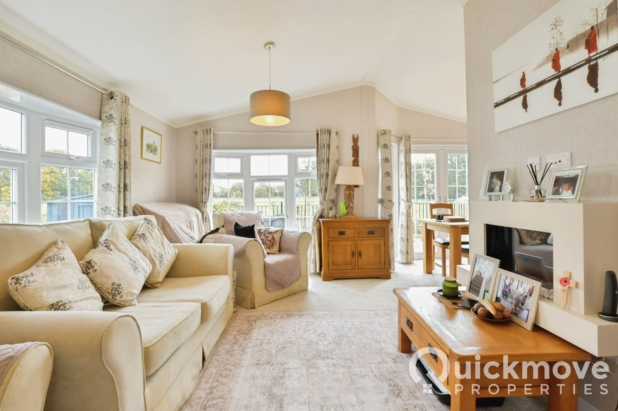 This pre-owned Omar Sandringham (40'x20') park home is perfect for those looking for a detached, easy-to-maintain, bungalow-style property. The home has a kitchen, a living and dining room with French doors leading out to the patio area with wonderful field view. The home has two double bedrooms, an en suite and a bathroom.
