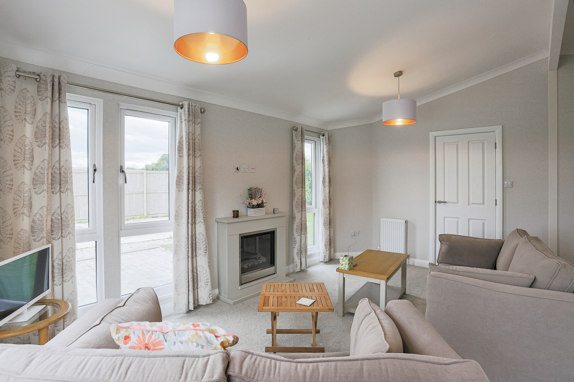 This modern Willerby Hazlewood (40'x20') luxury park home is perfect for those looking for a detached, easy to maintain, bungalow-style property. The home features a galley style kitchen, comfortable living room with an electric fireplace, two double bedrooms and two bathrooms. The exterior has a garden space with views of the surrounding countryside, raised patio area and a parking space.